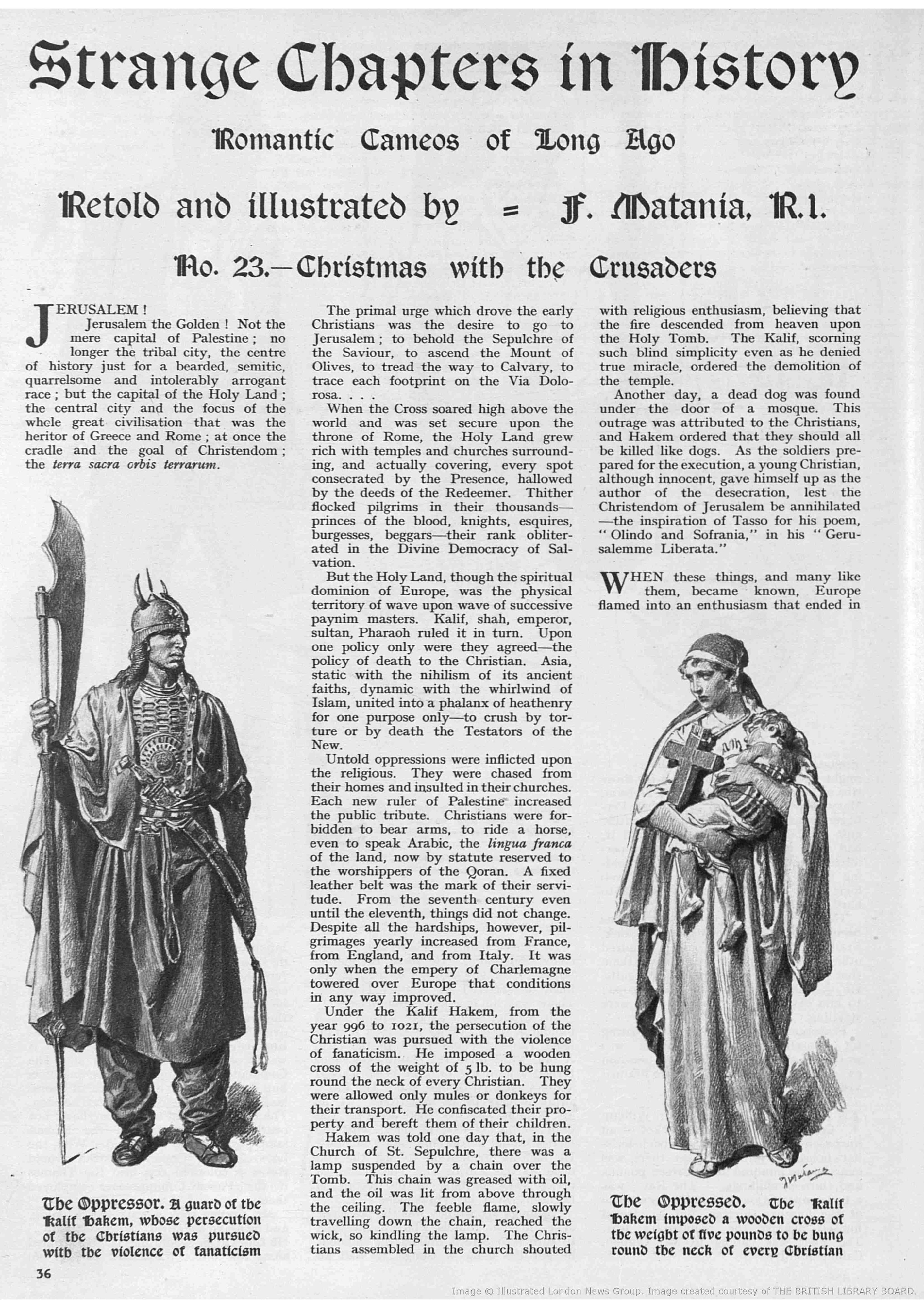 Illustrazione originale realizzata da Matania e pubblicata sul magazine inglese Britannia and Eve del 1 Dicembre 1933. La collaborazione di Matania con il periodico inglese portò alla creazione di alcune delle opere migliori dell‘artista napoletano, l‘opera da noi presentata fa parte della serie intitolata "Romantic Cameos of Long Ago". Al retro è presente il titolo e il timbro dell‘artista. Firmata.