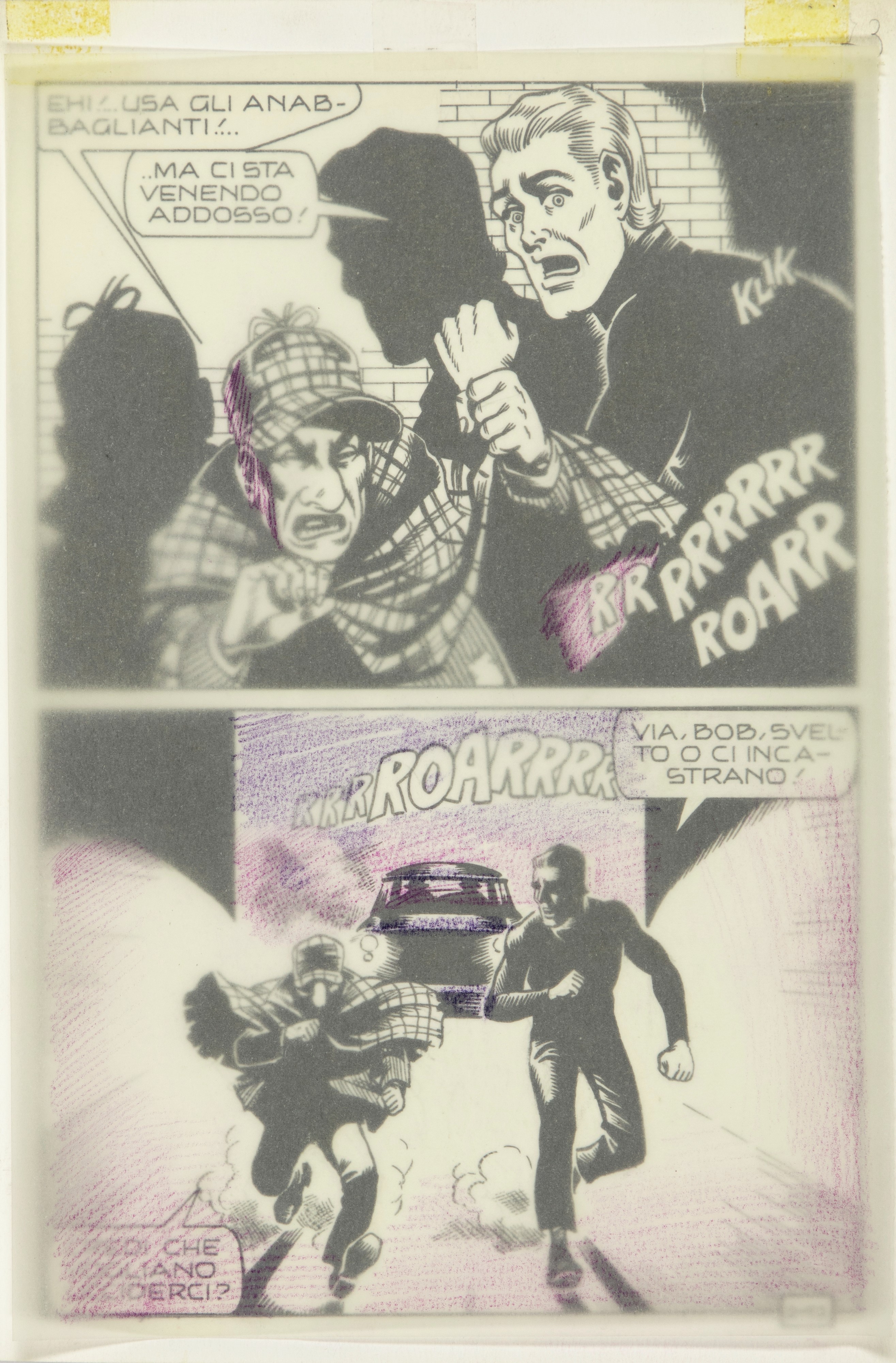 Tavola originale realizzata da Magnus per "Il dente cariato", edita su Alan Ford n. 2 a pag. 73 dalla Corno nel 1969. Si allega la velina con le indicazioni colore.