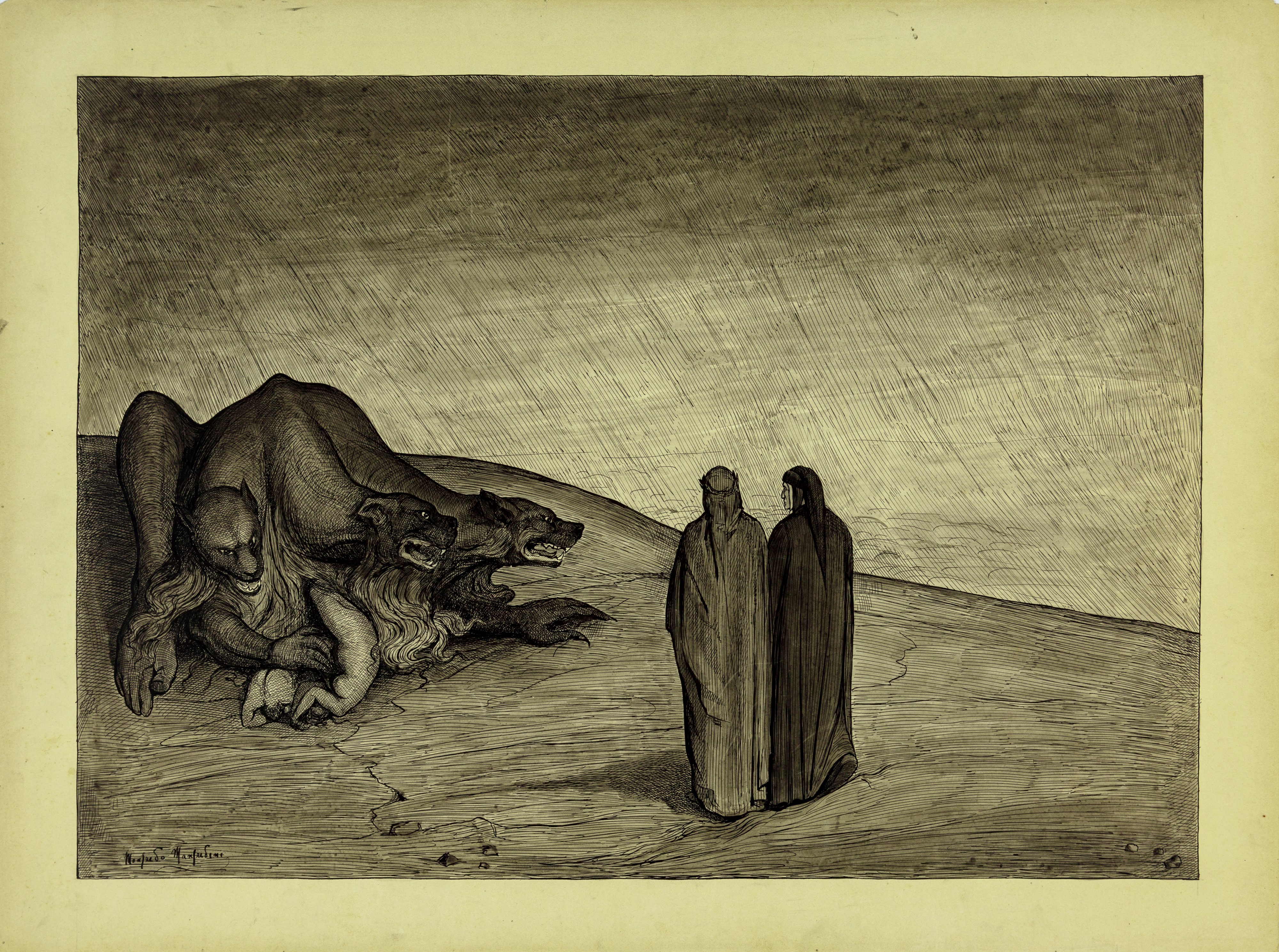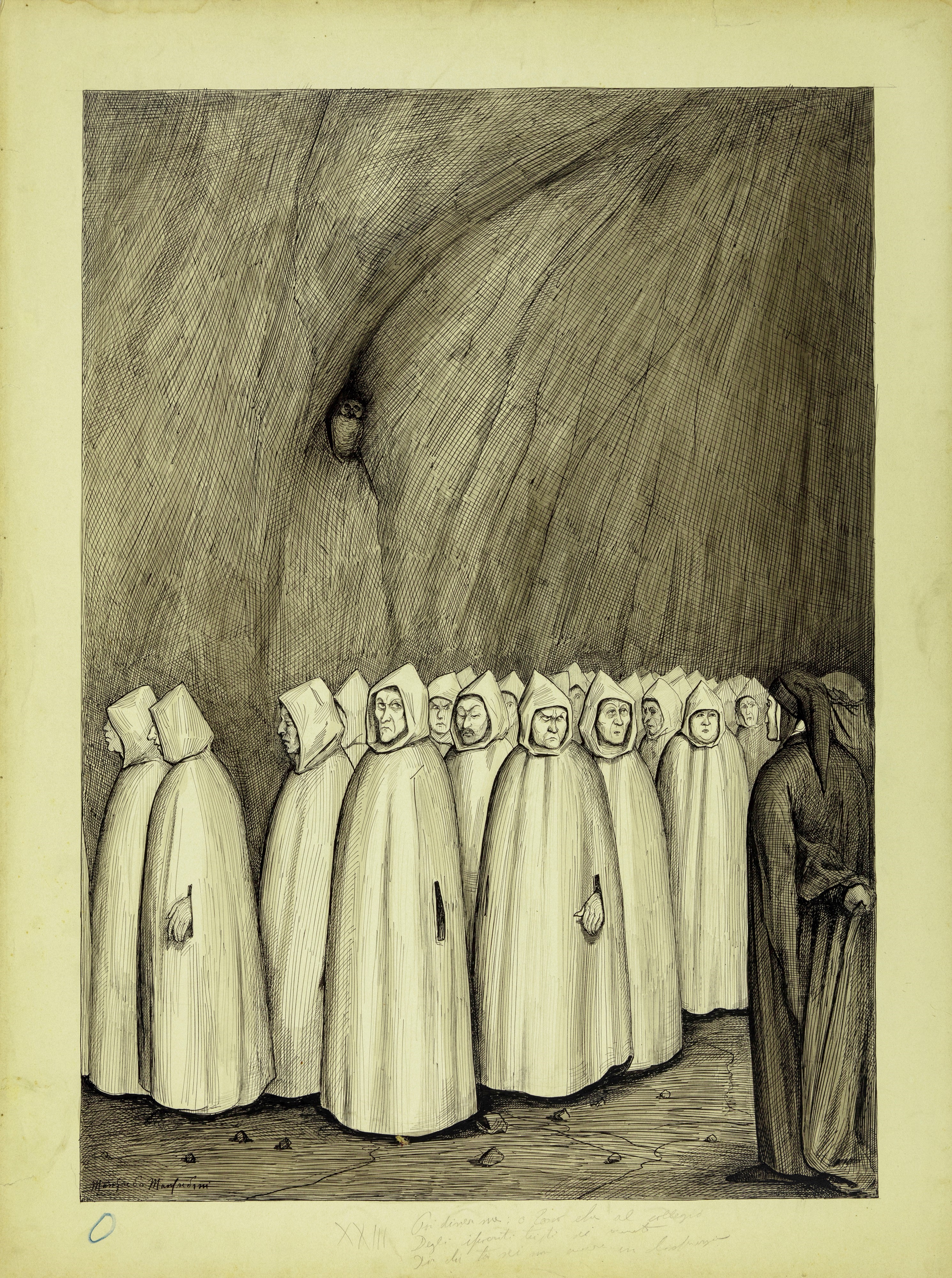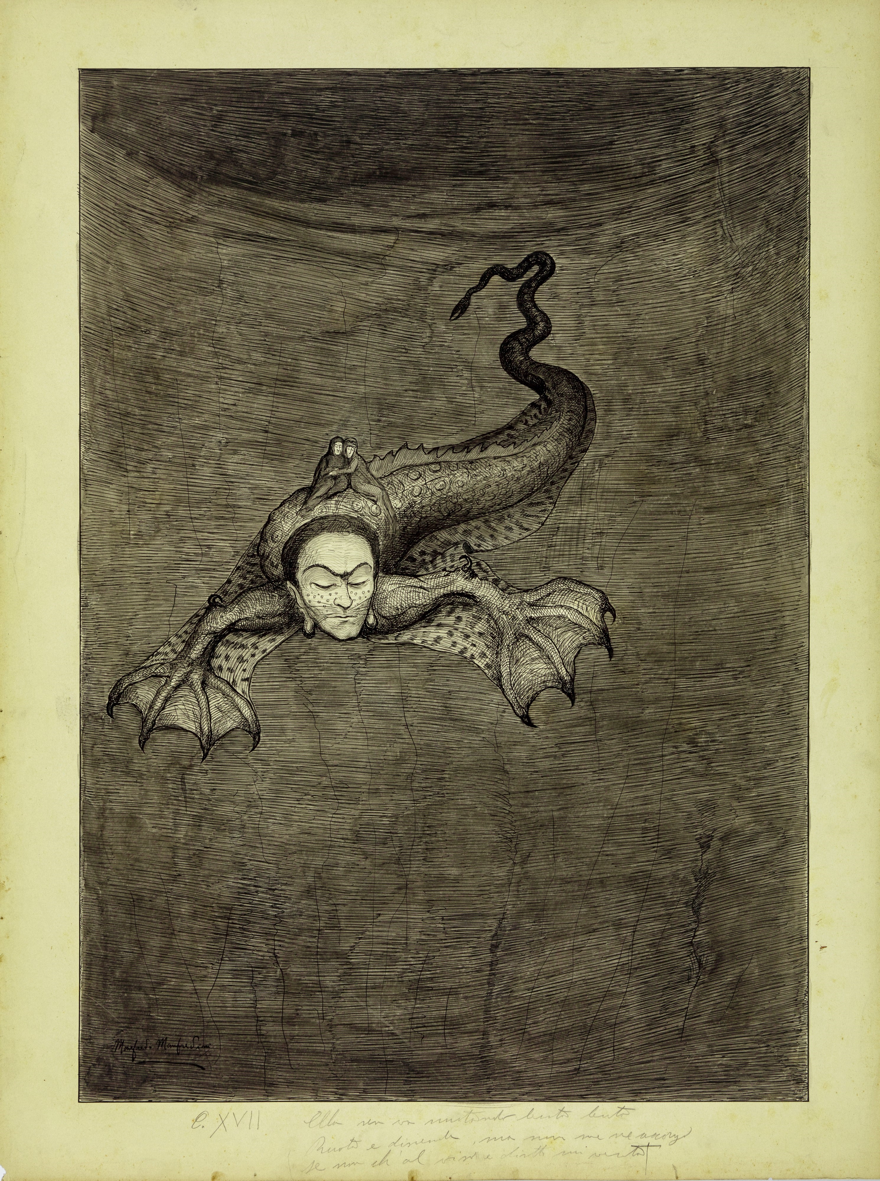 Illustrazioni originali realizzate da Manfredini tra il 1904 e il 1907 per la sua celebre edizione de "La Divina Commedia" edita da Nerbini nel 1908.