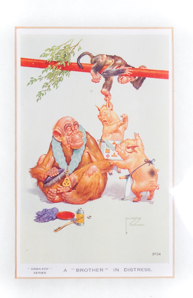 Disegno preliminare realizzato dall'artista inglese Lawson per una delle sue celebri cartoline della serie "Gran'Pop" nel 1935. Lieve piega al margine inferiore. Firmato.