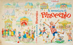 Originale di copertina (e quarta di copertina) realizzato da Baita per "Le avventure di Pinocchio", edito dall'Editrice Capitol nel 1965. Lievi pieghe ai margini.