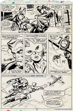 Tavola originale realizzata da Kupperberg per "He Who Destroys!", edita su Invaders n. 34 a pag. 23 dalla Marvel nel 1978.