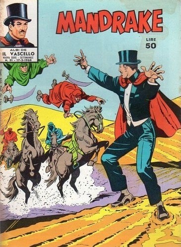Originale di copertina realizzato per l‘avventura di Mandrake intitolata "La piaga dei faraoni", edita nella collana Albi de Il Vascello n. 51 dalle Edizioni Fratelli Spada nel 1968. Piega orizzontale al centro.