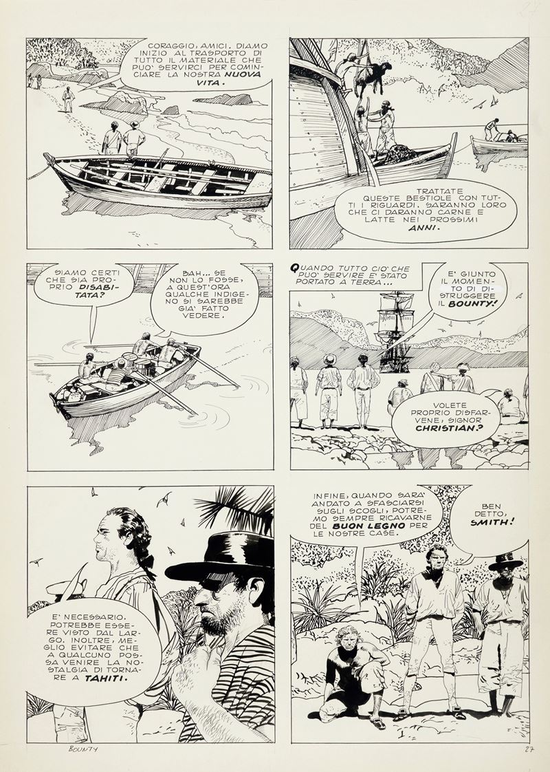 Tavola originale realizzata da Micheluzzi per "Gli ammutinati del Bounty", pubblicata per la prima volta su Il Giornalino n. 19 a pag. 27 nel 1984.