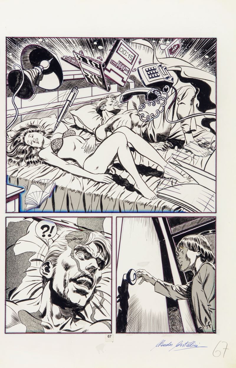 Tavola originale realizzata da Castellini per "La casa infestata", edita su Dylan Dog n. 30 a pag. 67 dalla Bonelli nel 1989. Una pagina storica per ogni dylandogofilo che si rispetti, Castellini che debuttò ufficialmente nel mondo del fumetto proprio con questo numero, dimostrando fin da subito una maestria degna della sua futura fama. Firmata.