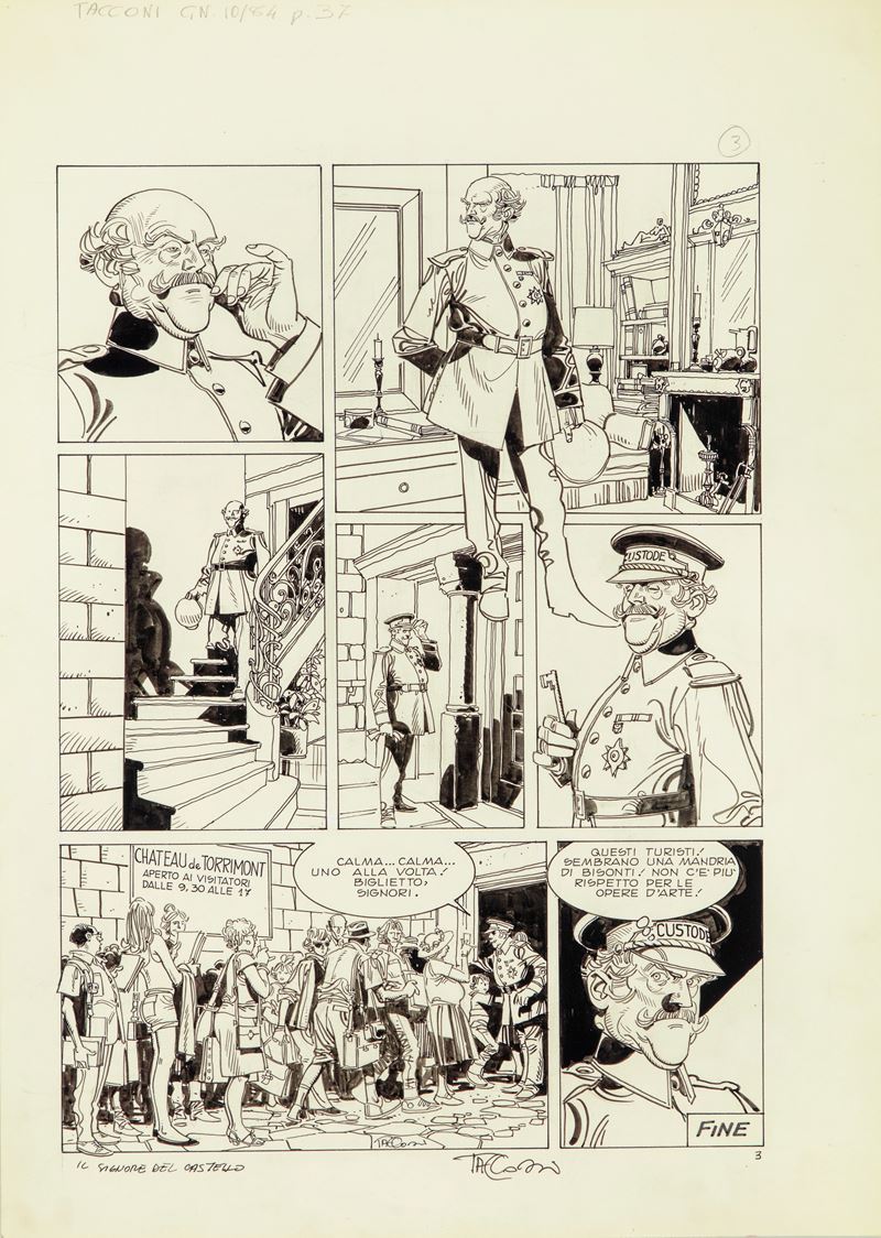 Tavola originale realizzata da Tacconi per la pagina finale della storia breve "Il signore del castello", edita su Il Giornalino n. 10 del 1984. Firmata.