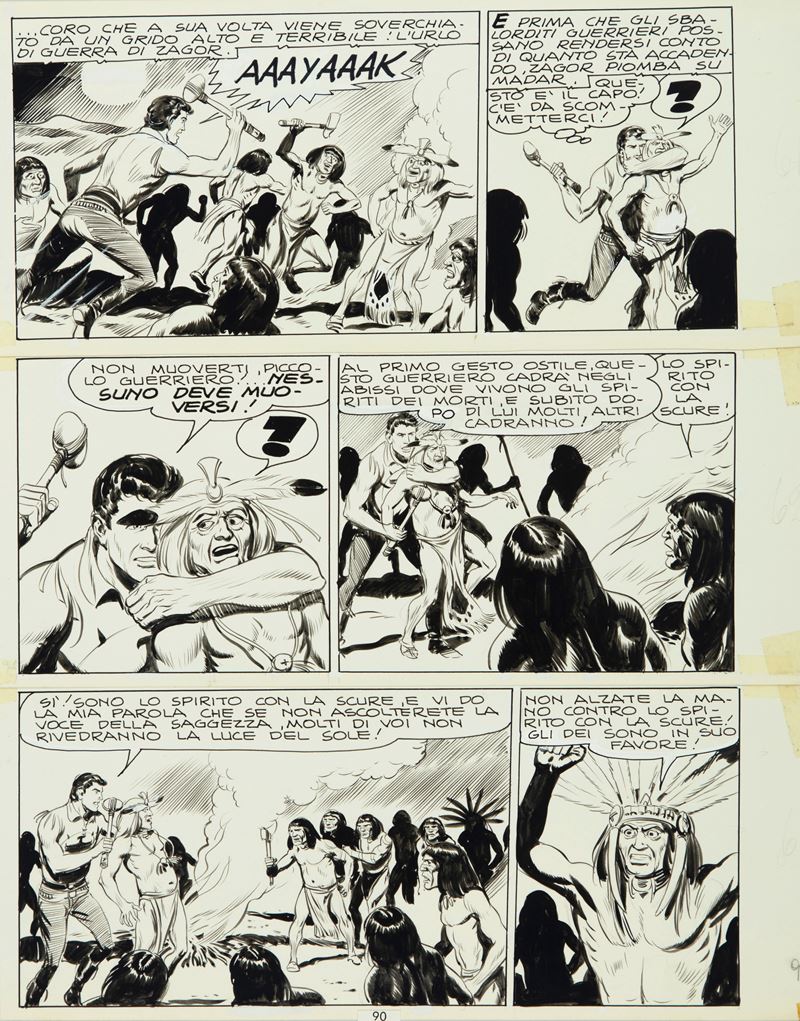 Tavola originale realizzata da Ferri per "La danza della scure" edita su Zagor n. 10 a pag. 90 dalla Bonelli nel 1966. Su tre pannelli.