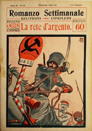 Originale di copertina realizzato da Toppi per il romanzo "La rete d'argento", edito nella collana Romanzo Settimanale da Nerbini nel 1929. Fori di affissione ai margini. Firmato.