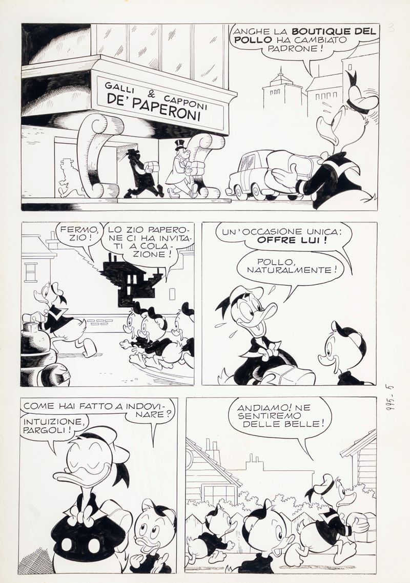 Tavola originale realizzata da Chierchini per "Zio Paperone e la bilancia di Brenno", edita su Topolino n. 995 a pag. 3 nel dicembre 1974. Lievi pieghe.