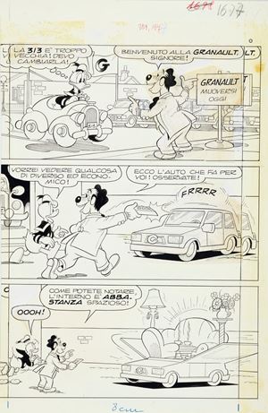 Storia completa composta da 2 tavole originali realizzate da Scala per "Lo spot della settimana", edita su Topolino n. 1677 nel gennaio 1988. Presenza di fotocopie nella prima pagina.