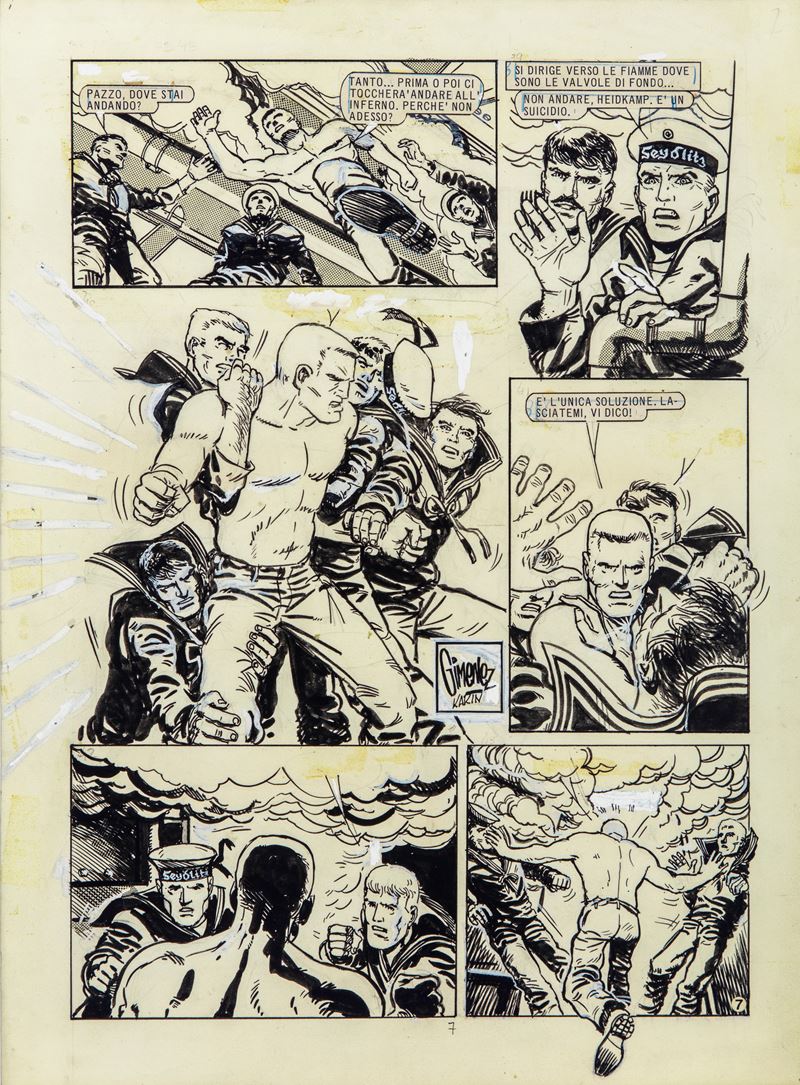 Tavola originale realizzata da Gimenez per "Generale Staube", pag. 7 di questa storia edita per la prima volta in Italian su Lanciostory n. 38 nel 1977. Firmata.