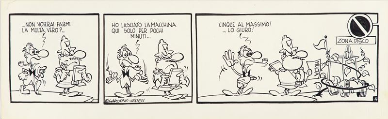 Striscia originale realizzata da Lucchesi per la serie "Il vigile e l'automobilista", edita durante gli anni '90. Firmata.
