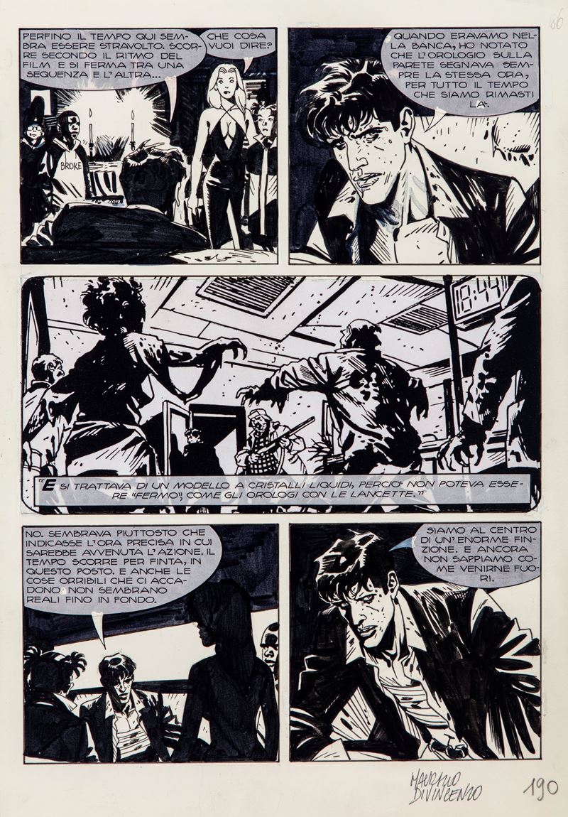 Tavola originale realizzata da Di Vincenzo per "Horror Cult Movie", edita su Dylan Dog Gigante n. 11 a pag. 190 dalla Bonelli nel 2002. Terza vignetta in fotocopia. Firmata.