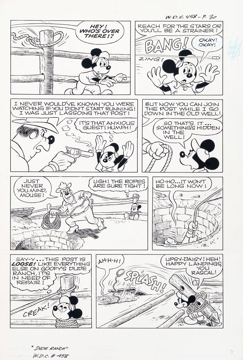 Tavola originale realizzata da Murry per "Dude Ranch", pubblicata per la prima volta negli USA su Walt Disney‘s Comics and Stories n. 458 nel 1978 e successivamente in Italia su Topolino n. 1318 nel 1981. Piega all‘angolo superiore sinistro.