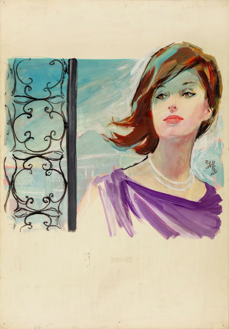 Dipinto originale realizzato da Geleng per il romanzo "I buoni compagni" di John Boynton Priestley, edito nella collana I Romanzi del Pavone n. 241 dalla Mondadori nel 1960. Fori di affissione agli angoli. Firmato.
