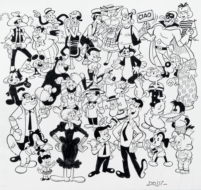Originale di copertina realizzato da Dossi per il volume "Italia ride! L'avventurosa epopea del fumetto comico italiano del dopoguerra" di Luca Boschi, edito da ANAFI nel 2020. Firmato.
