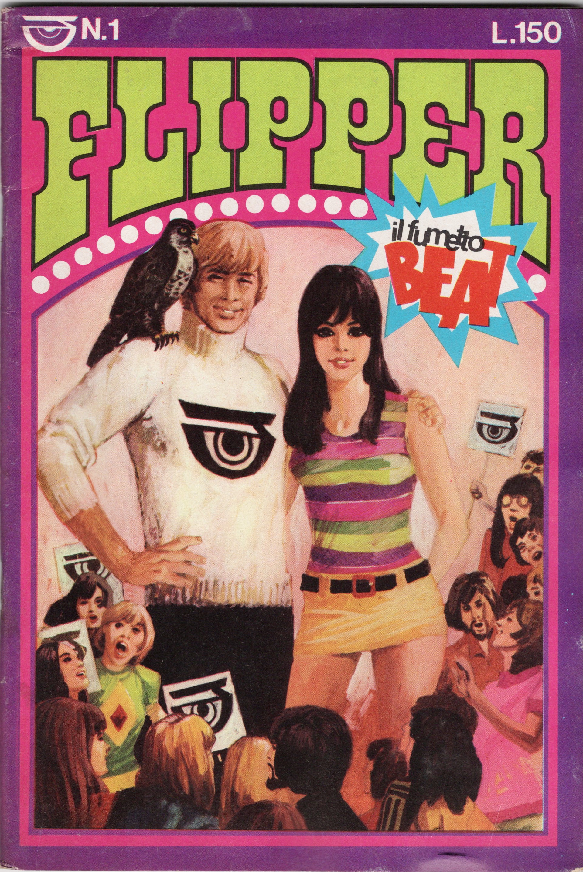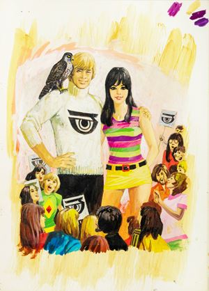 Originale di copertina realizzato da Zaniboni per Flipper: Il Fumetto Beat n. 1, edito dalle Edizioni Lysis nel 1967. Fori di affissione ai margini.