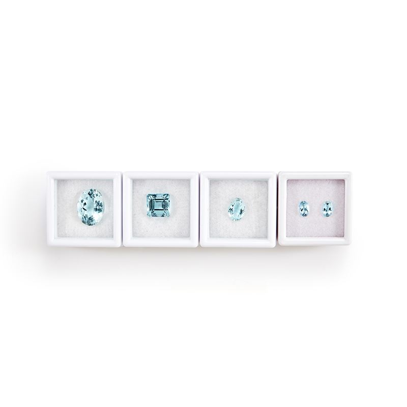 Lotto di cinque acquemarine in cartina per totale ct 14,28