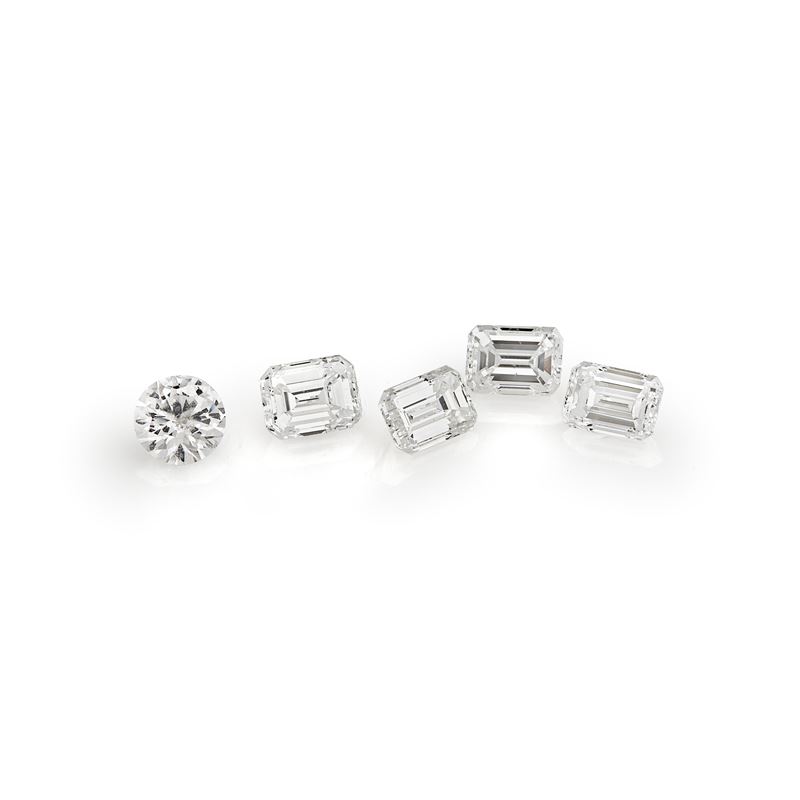 un diamante taglio brillante di ct 0,41 e quattro diamanti taglio smeraldo per totale ct 1,05.