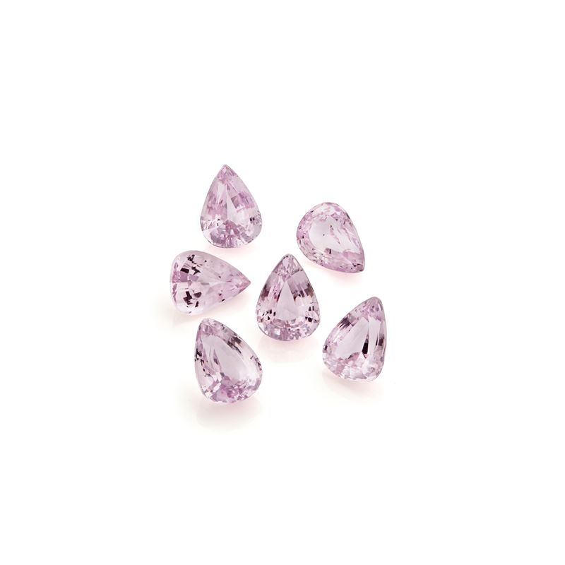 Lotto di sei kunziti in cartina per totale ct 62,91