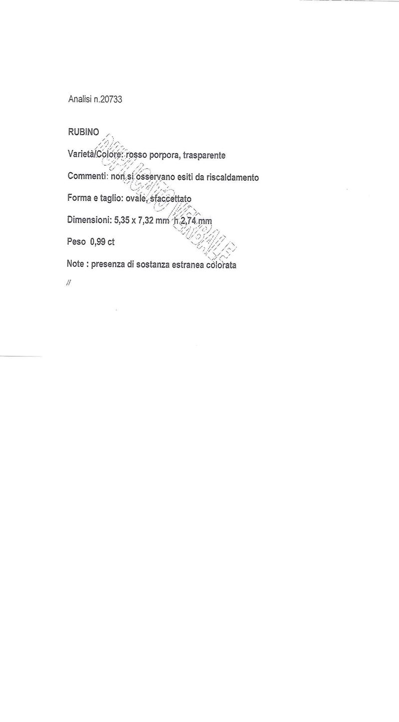 di forma ovale, taglio sfaccettato, no heat, presenza sostanza estranea colorata.