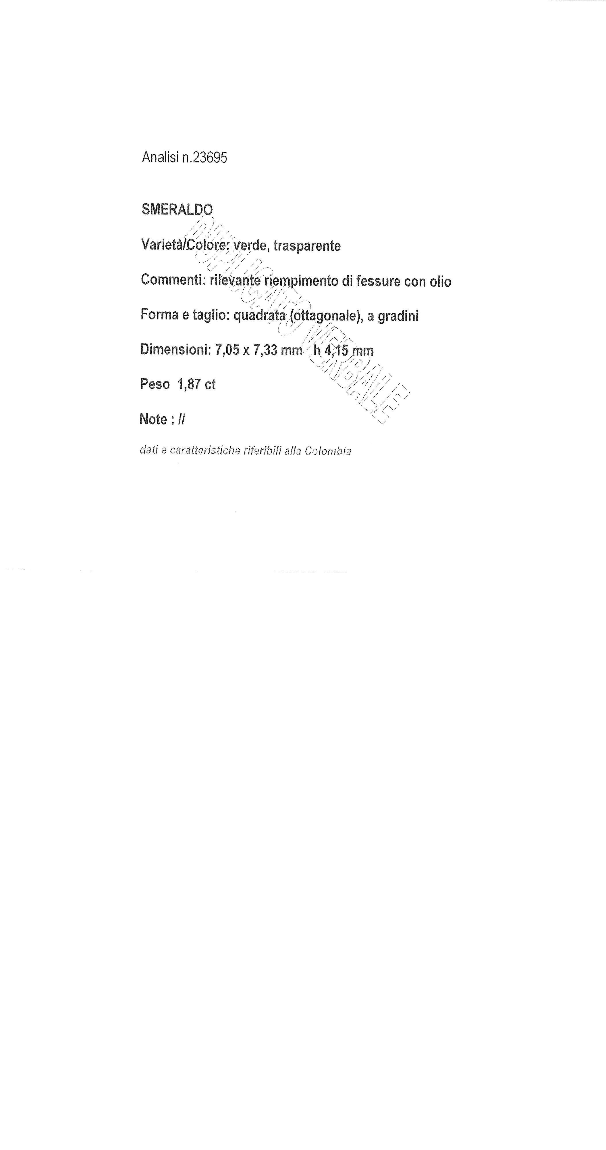 Lo smeraldo è accompagnato da short report n. 30987 del 01/07/2025 CISGEM, Milano, e analisi verbale n.23695.