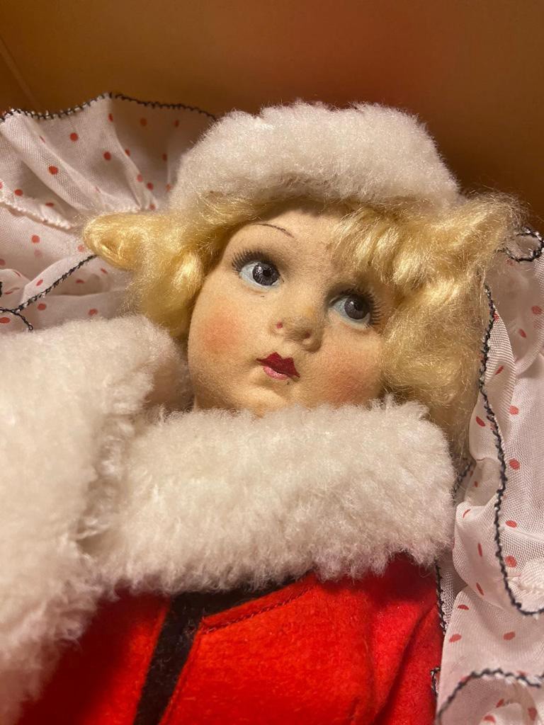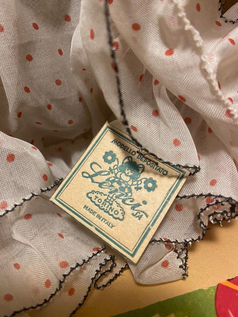 In feltro, abiti originali, scatola in buone condizioni (completa di coperchio). Completa di cartellino originale e numero di serie sulla scatola esterna