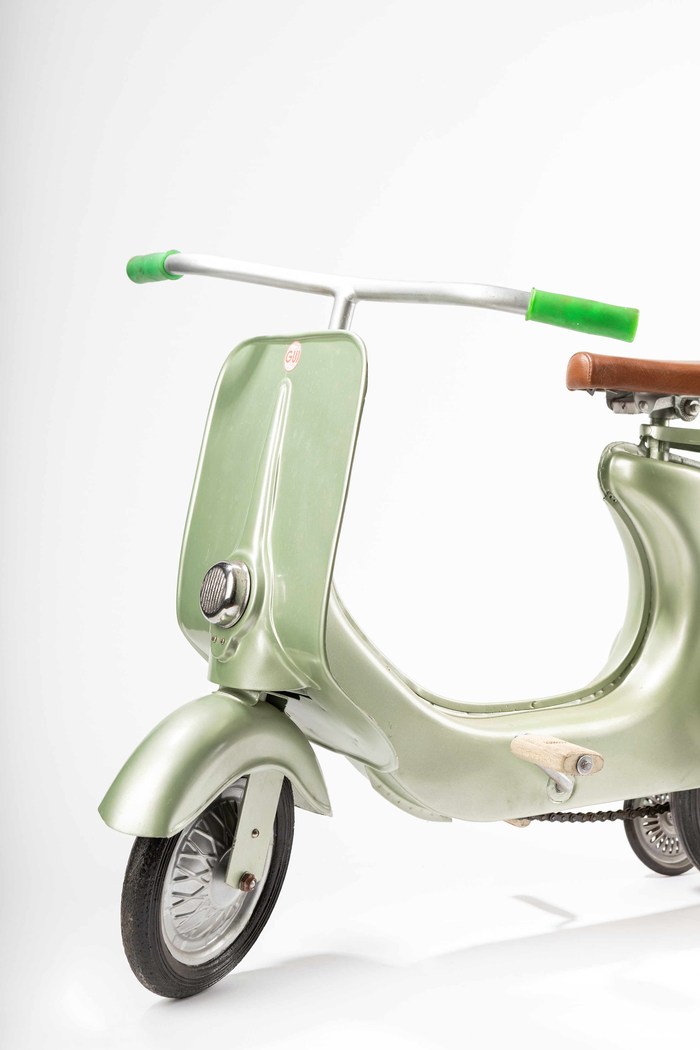 Ogni epoca ha la sua moda, e negli anni '50 la Vespa era sicuramente un oggetto di culto che creò un vero e proprio fenomeno sociale. Così Pierre Gui decise di realizzare un bellissimo modello a pedali seguendo proprio le linee della Vespa.