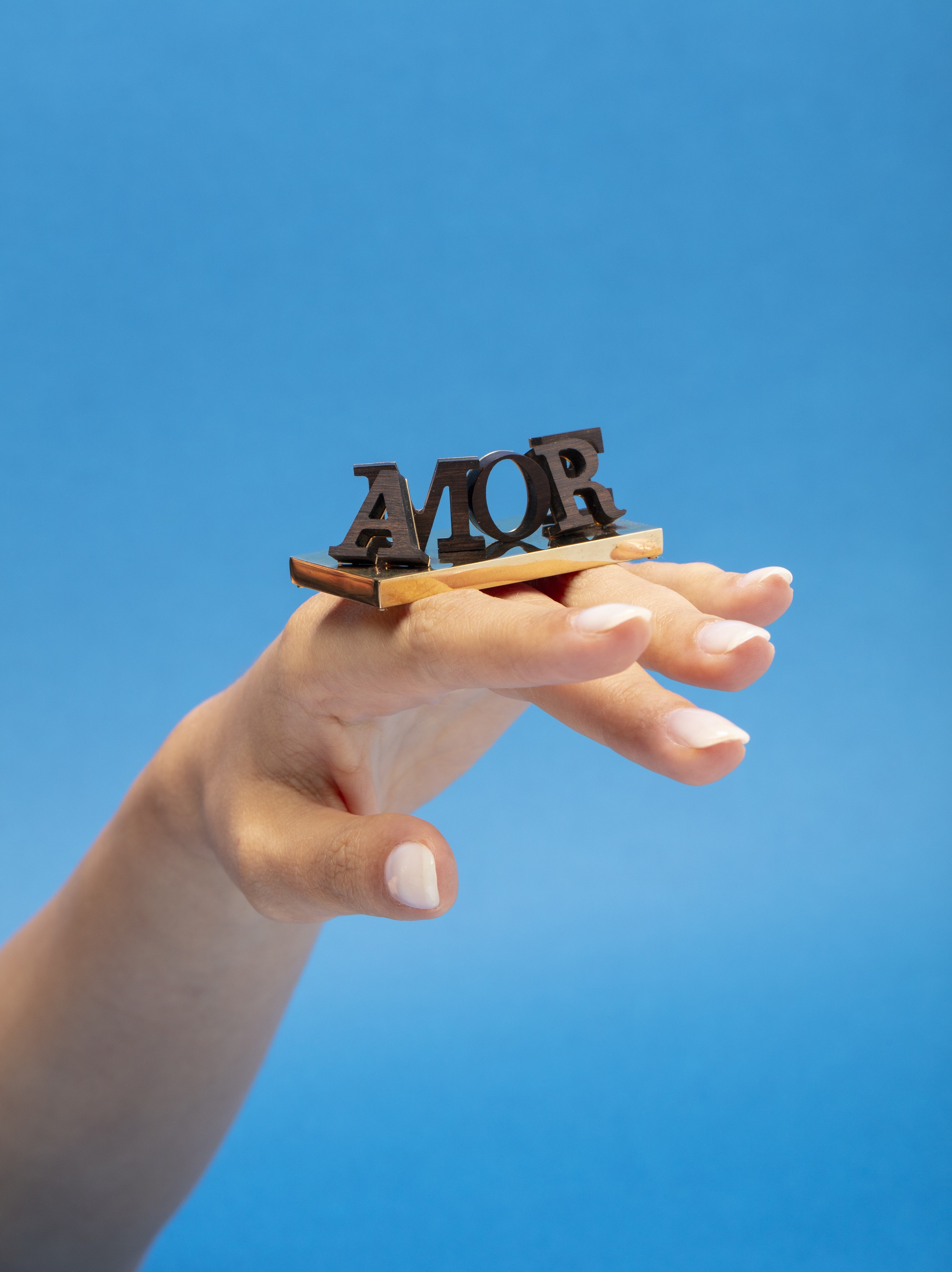in argento 925dorato, con lettere in legno a comporre la parola "AMORE", firmato e punzonato.