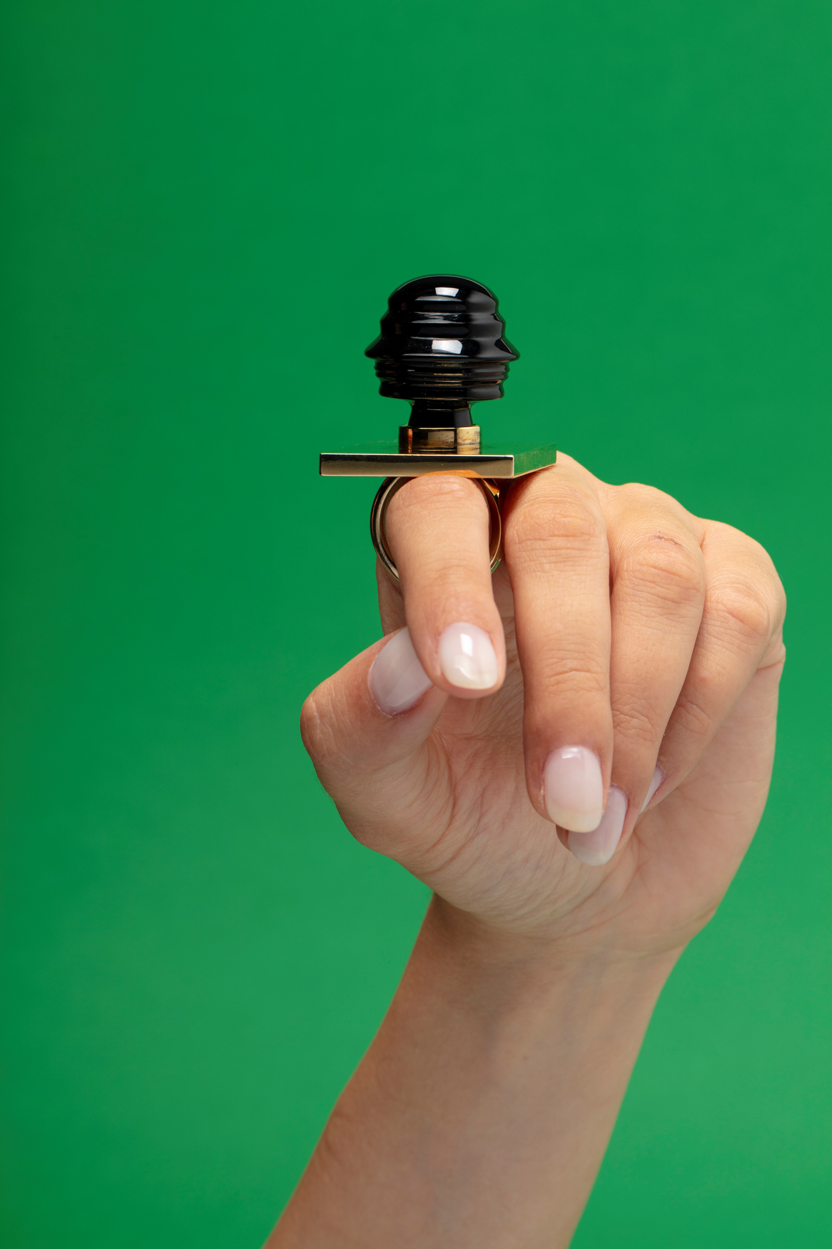 in argento 925dorato, con profilo dell'artista in onice, firmato e punzonato.