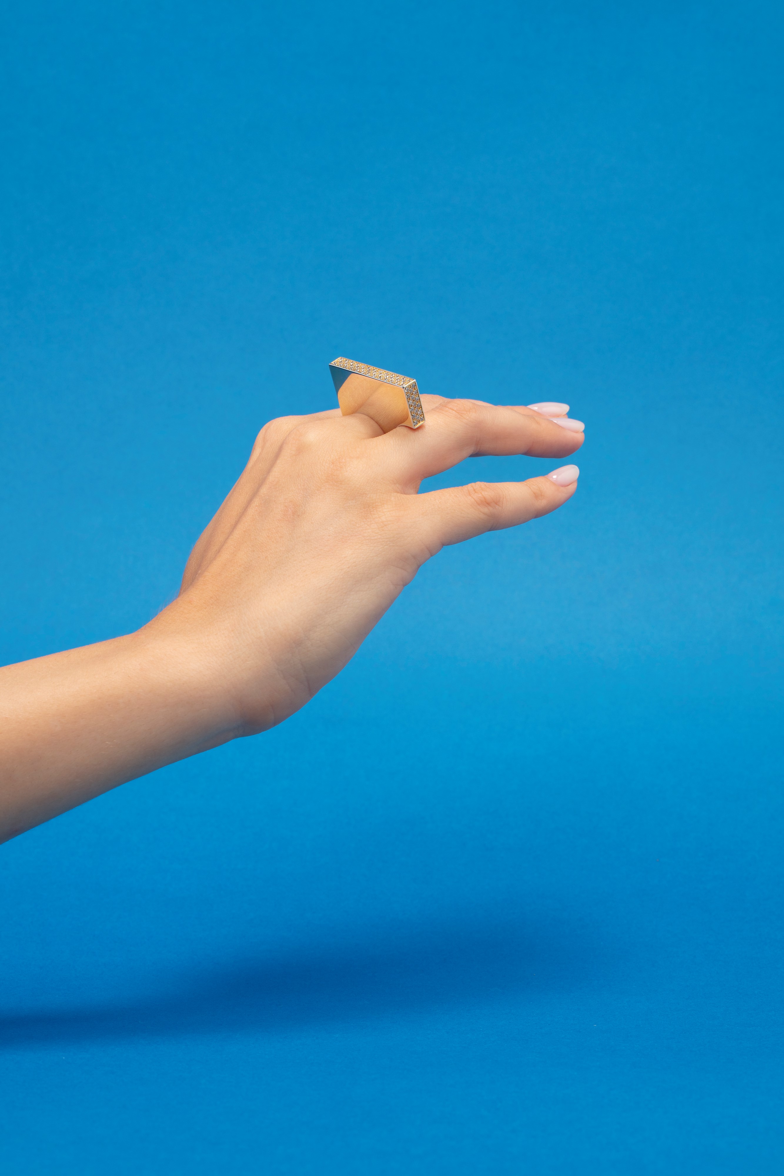 in argento 925dorato, di forma geometrica, decorato con zirconi taglio brillante, firmato e punzonato.