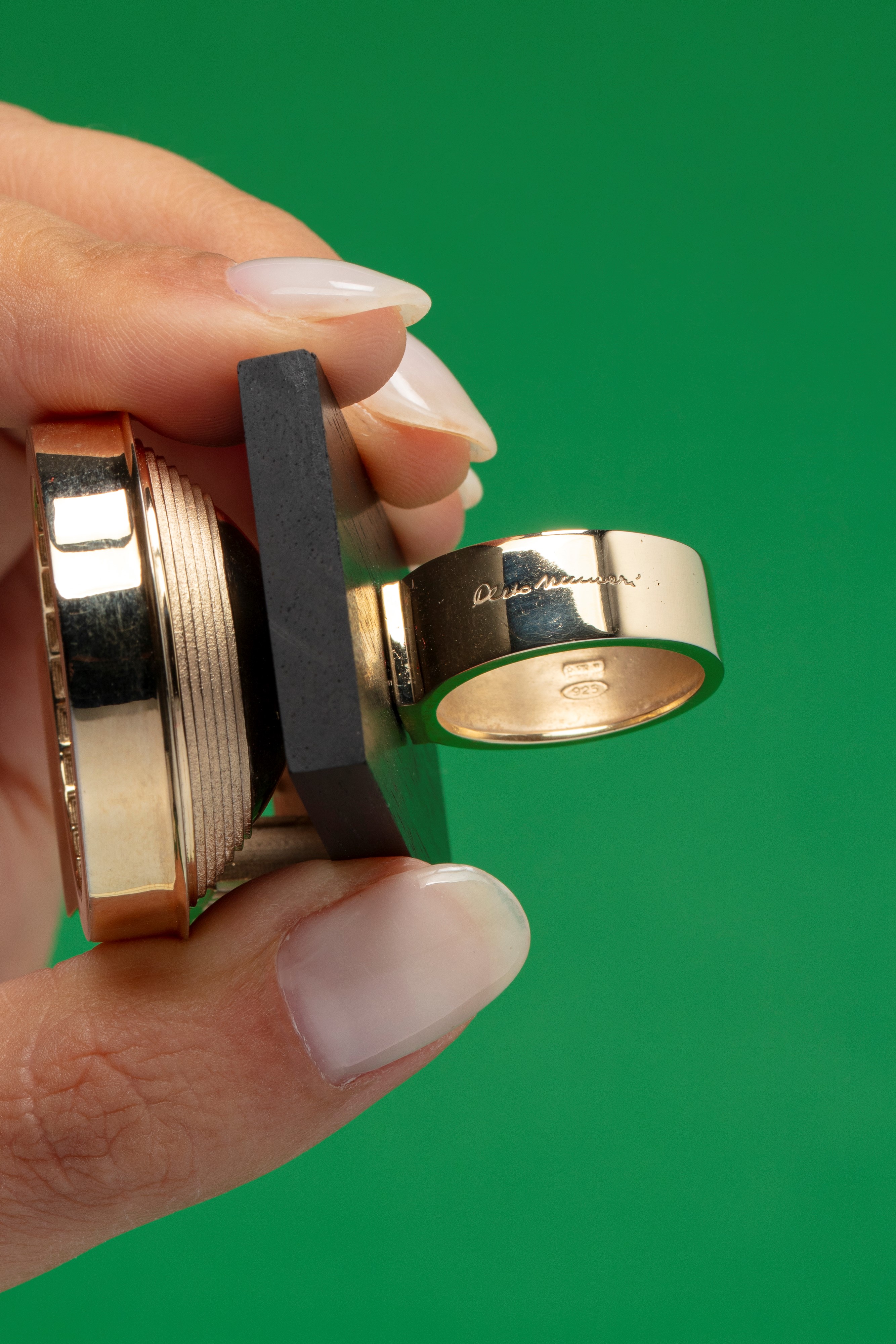 in argento 925dorato, con elementi architettonici su base in legno, firmato e punzonato.