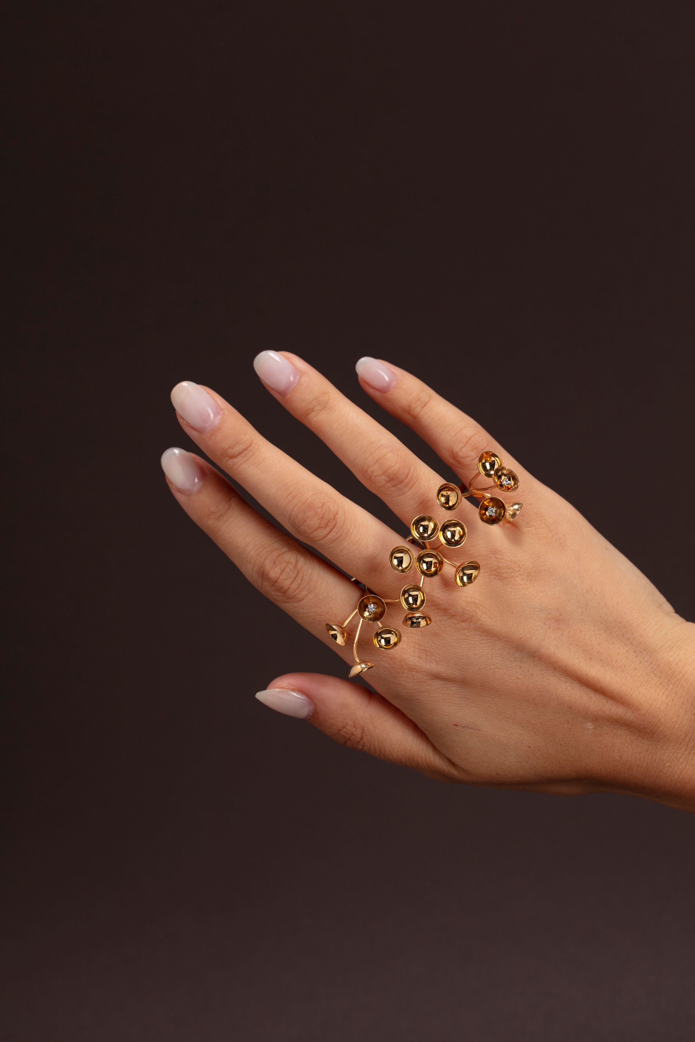 in argento 925dorato, a tre dita, con rametti decorati da zirconi taglio brillante, firmato e punzonato.