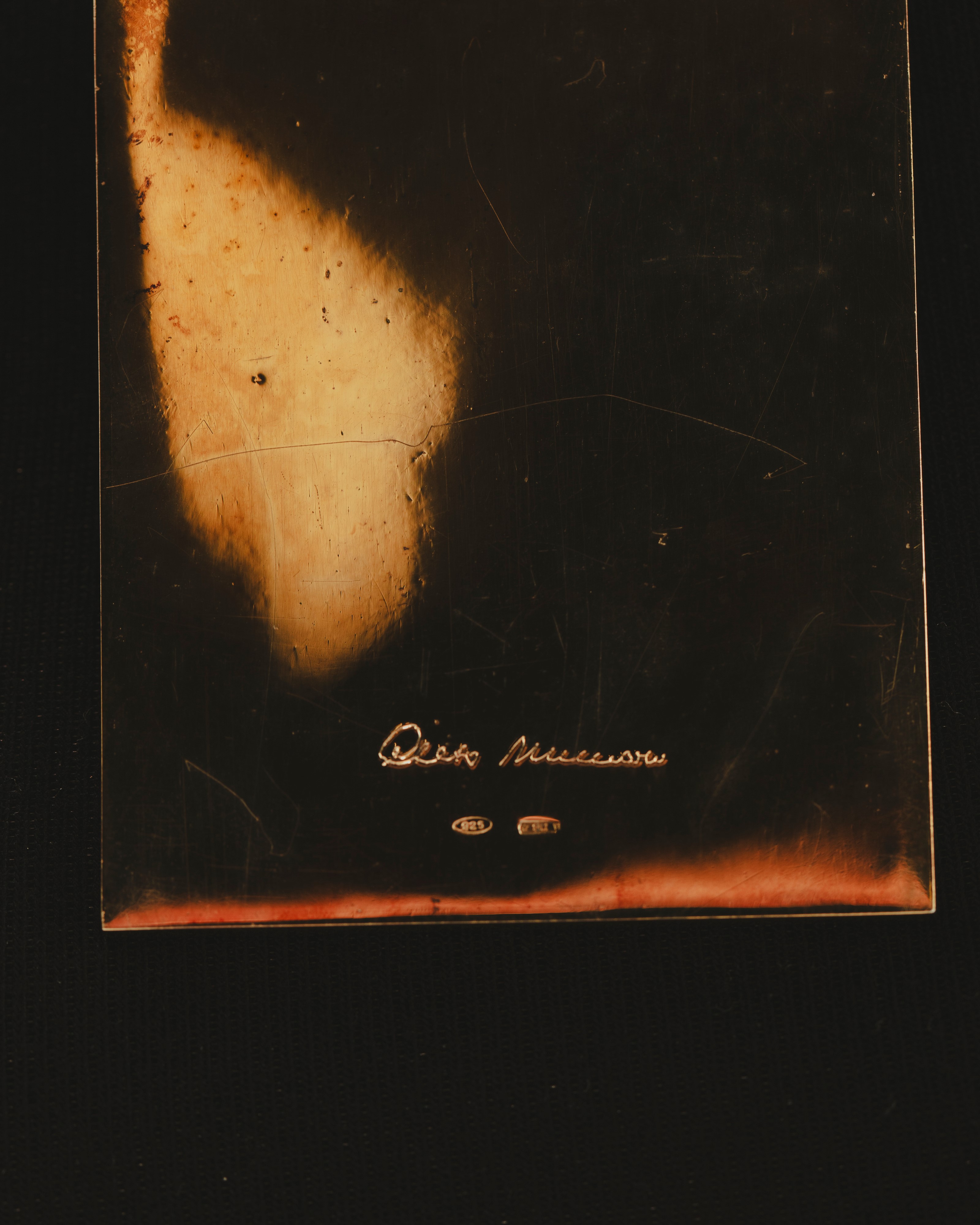 in argento 925dorato, ad altorilievo, firmato e punzonato, difetti (lievi graffi al retro).