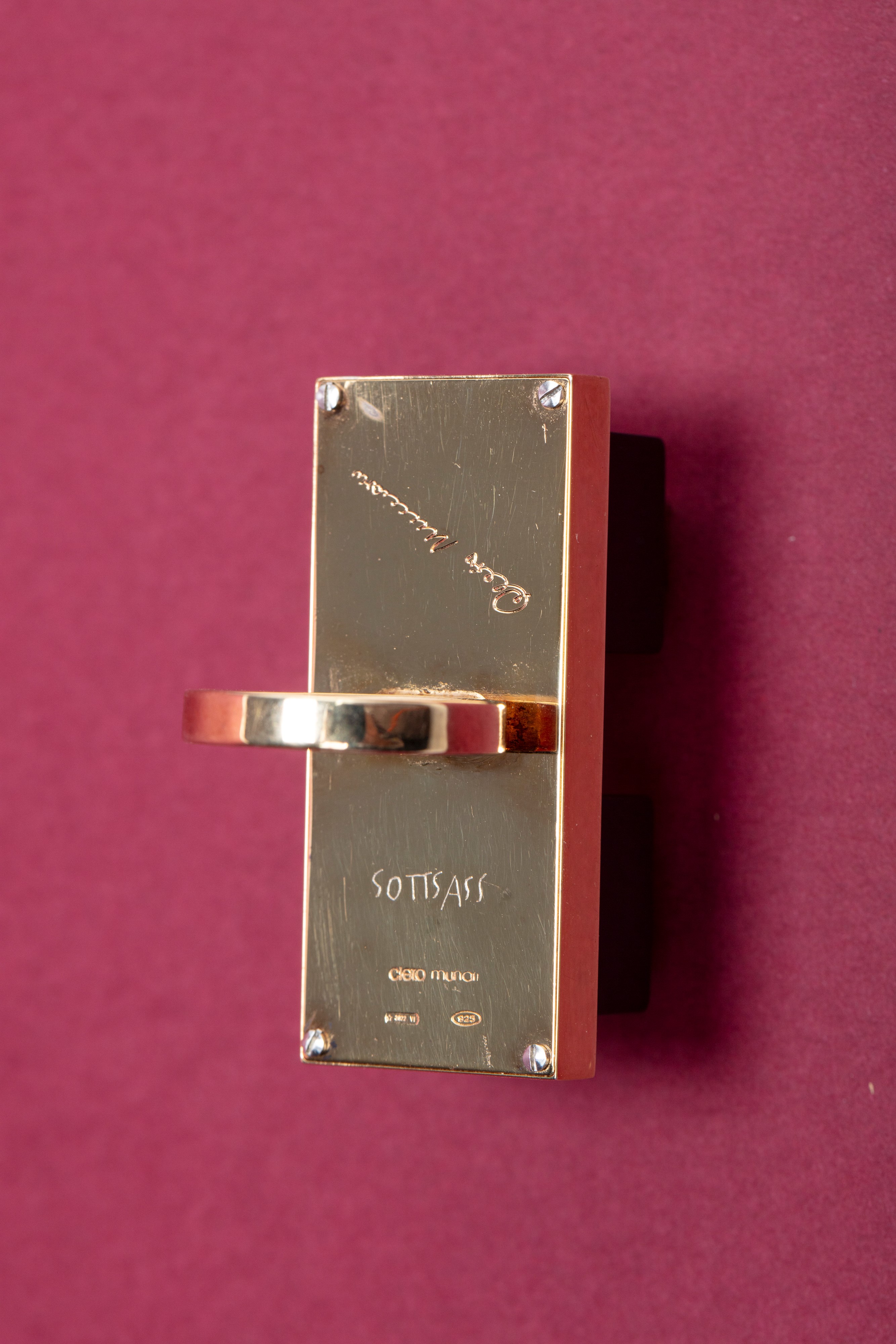 in argento 925dorato, di forma geometrica con due cilindri in onice, firmato e punzonato, difetti (graffi all'interno dei due cubi).