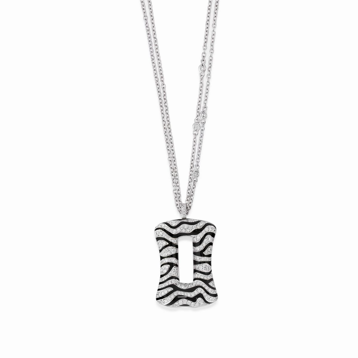 in oro bianco 18K, a motivo zebrato in diamanti taglio brillante per totale ct 2,60 circa complessivi e smalto nero.