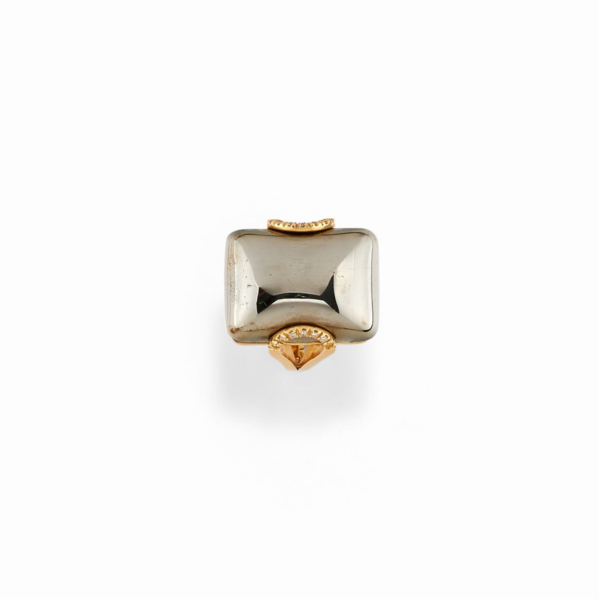 in oro giallo 18K, con pirite di forma rettangolare e diamanti.
