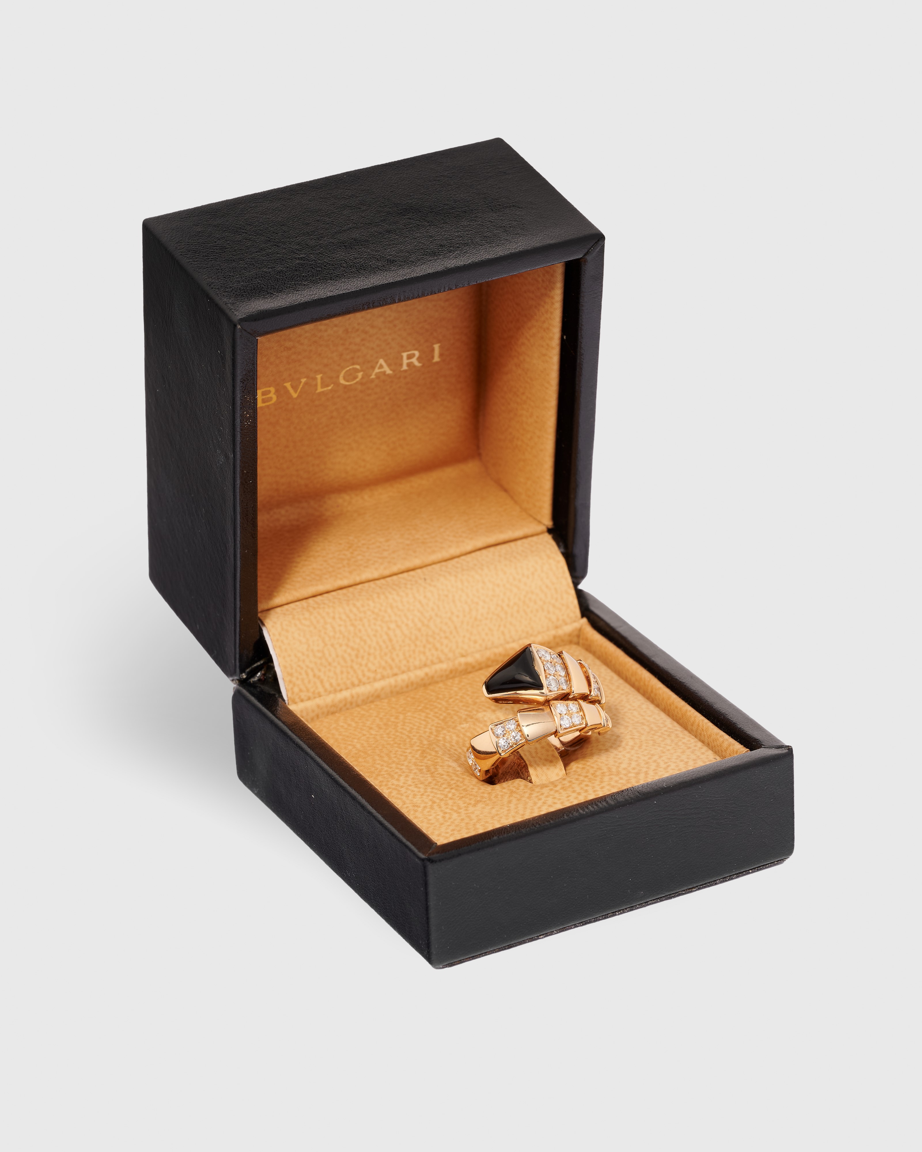 elastico, con pavè di diamanti taglio brillante e testa in onice, con scatola.