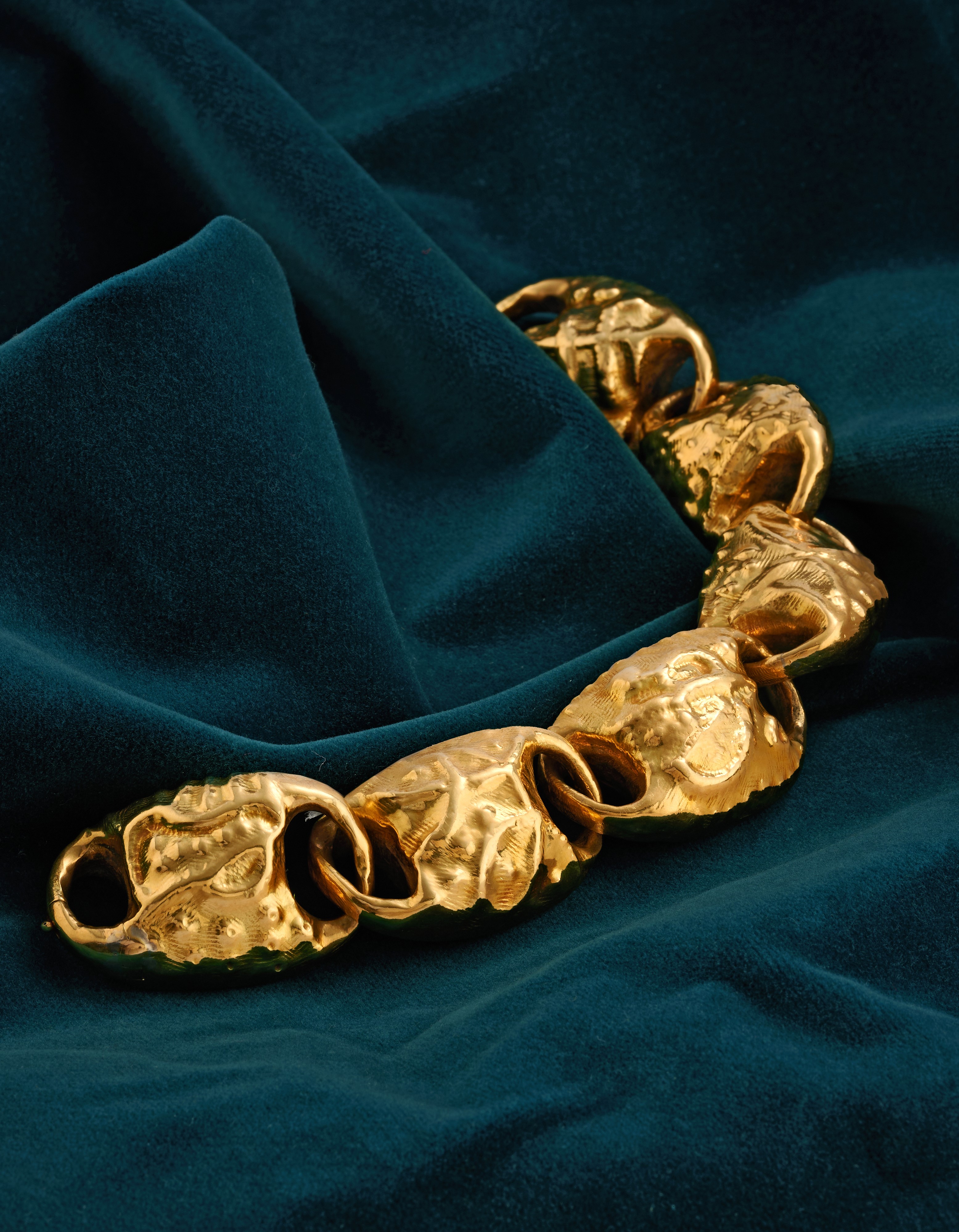 in oro giallo 18kcon sei maglie snodate a foggia di chela, firmato.