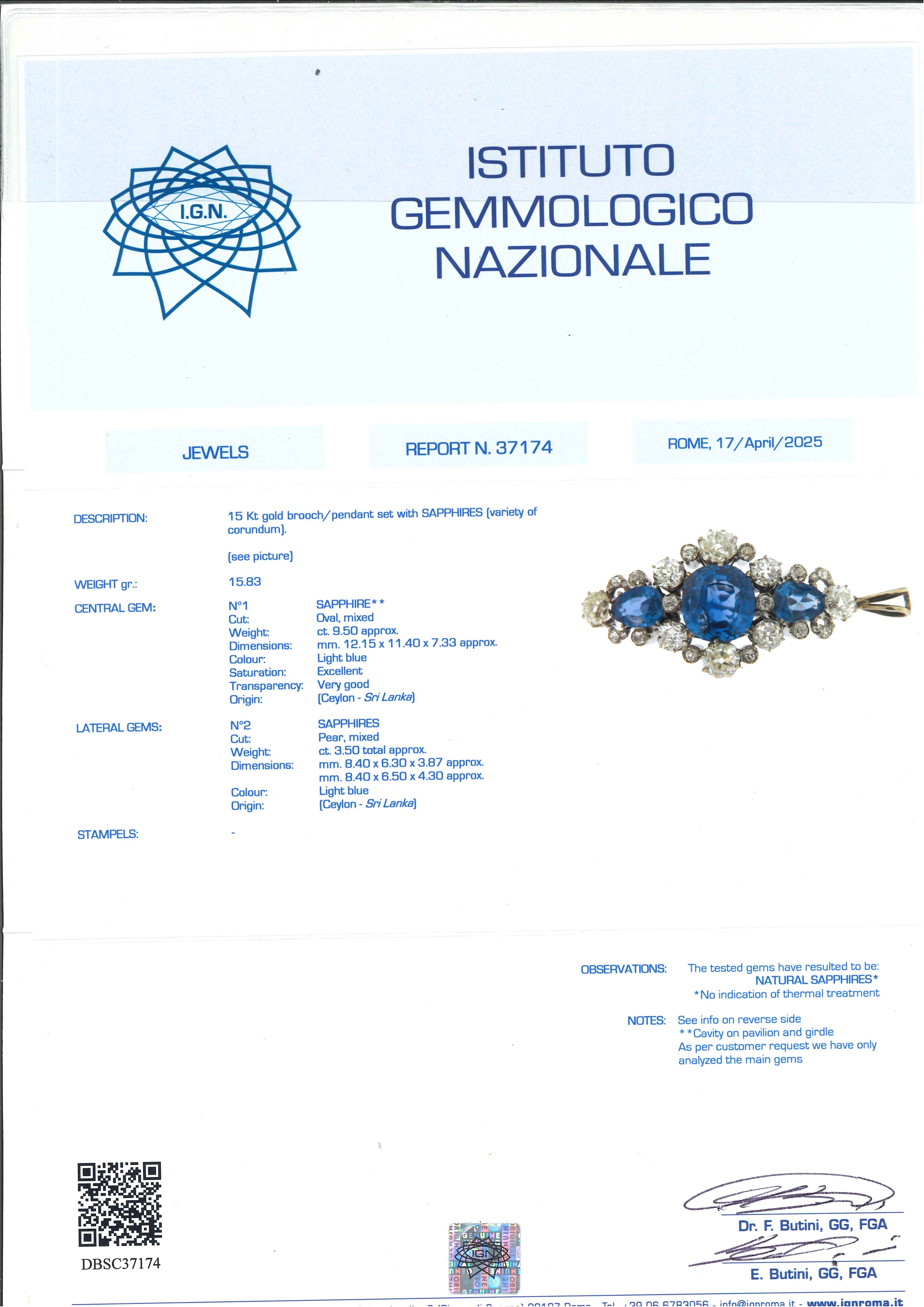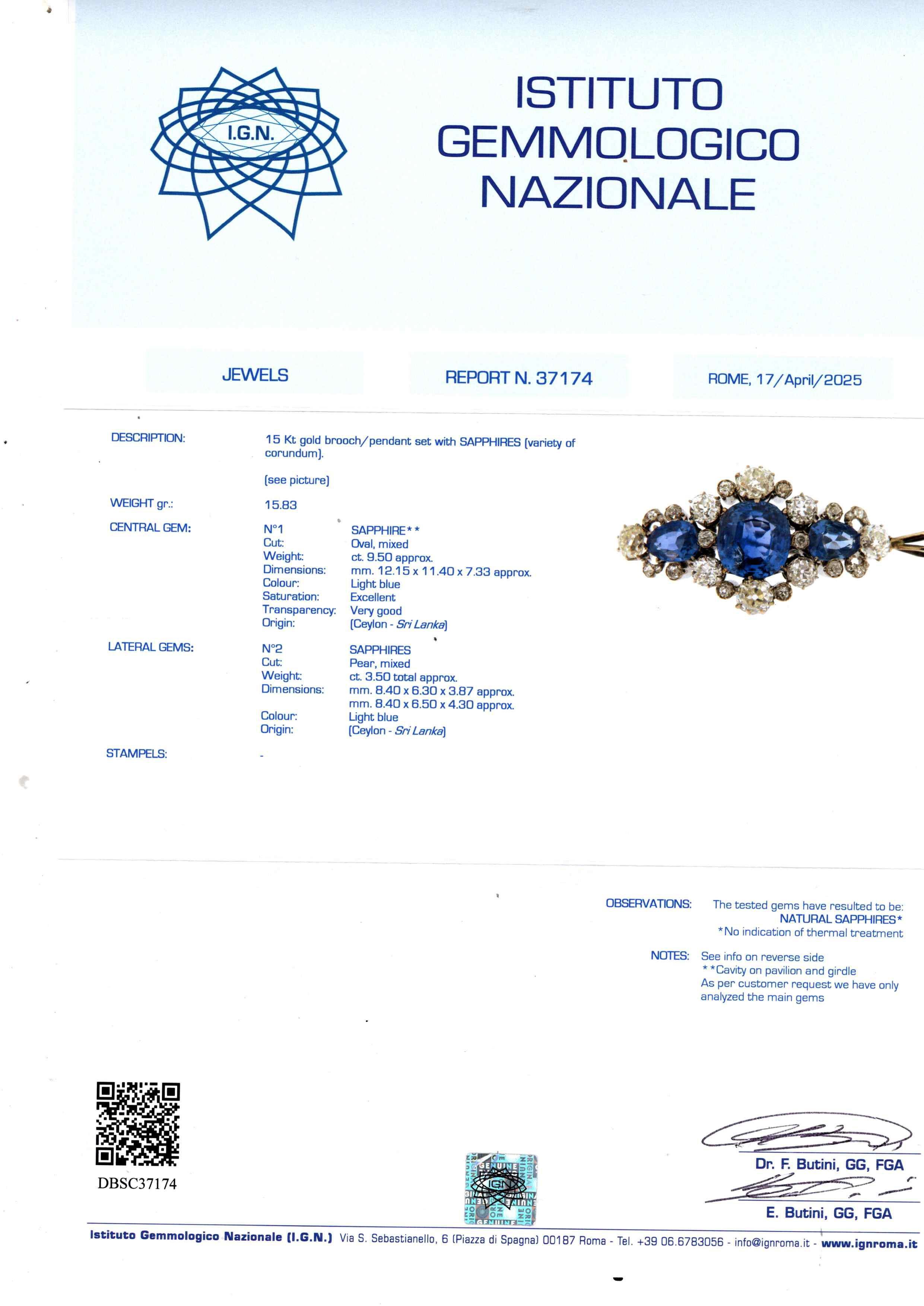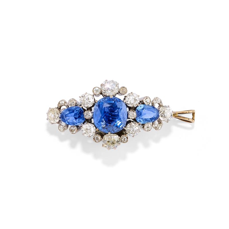 Spilla-pendente con zaffiri Ceylon e diamanti