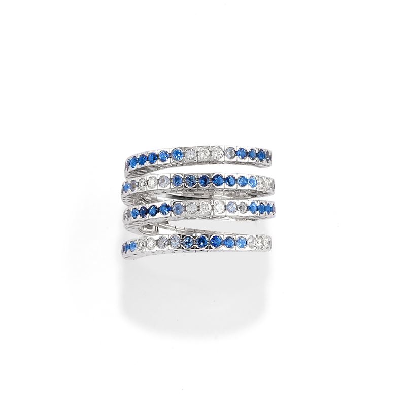maglia leggermente elasticizzata con diamanti taglio brillante per totale ct 0,46, colore G, purezza VVS-VS e zaffiri taglio rotondo per totale ct 1,97.