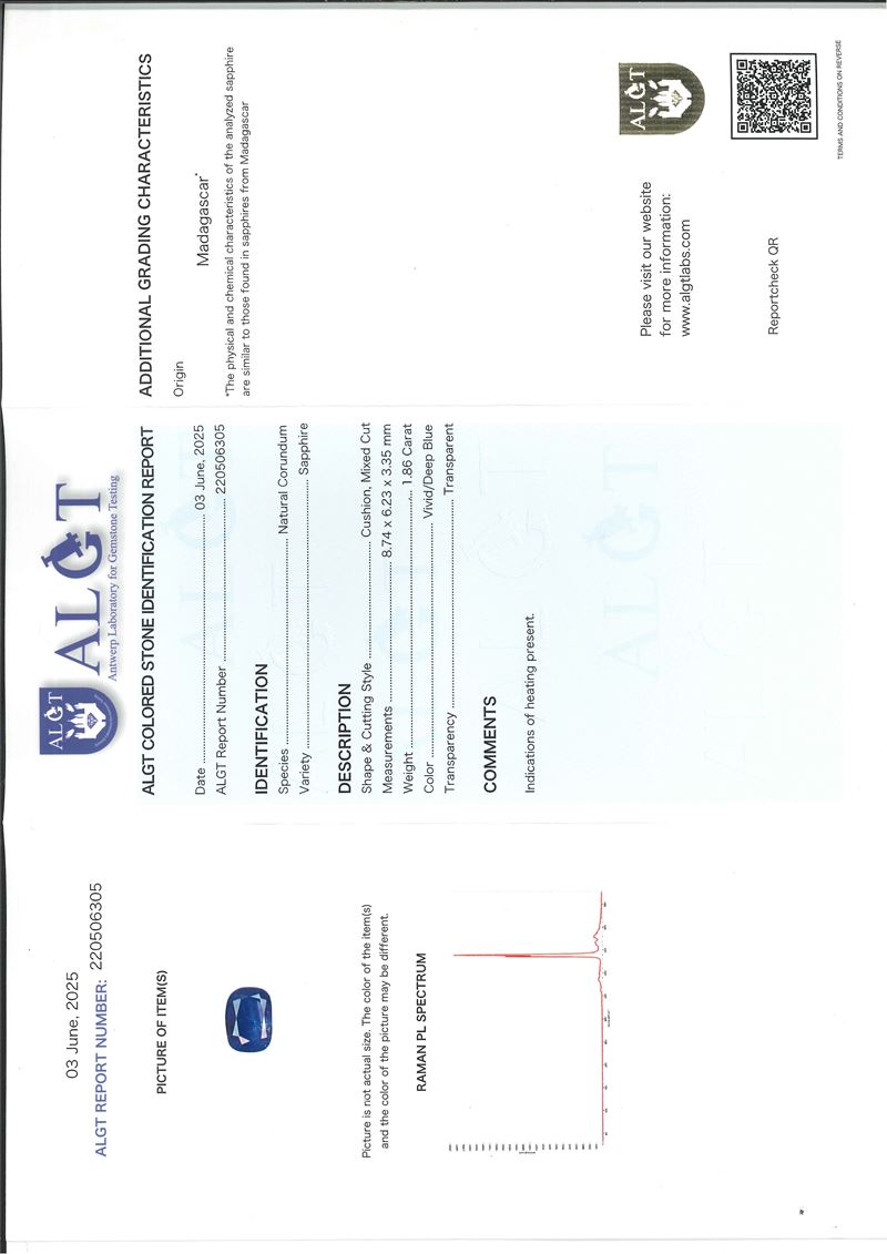in platinoal centro zaffiro taglio ovale di ct 1,86 (caratura incisa) entro contorno in diamanti taglio brillante per totale ct 0,25 (caratura incisa).