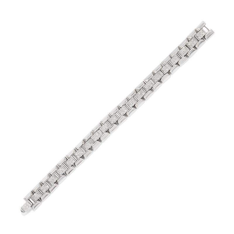 a maglie geometriche, decorate al centro da diamanti taglio brillante per totale ct 1,30 circa.