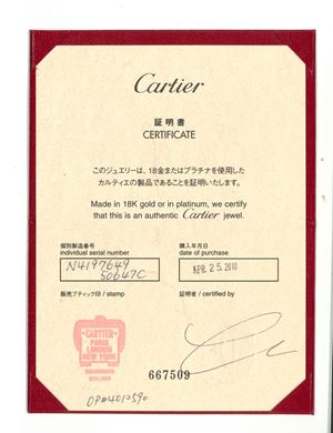 E certificato di autenticità Cartier.