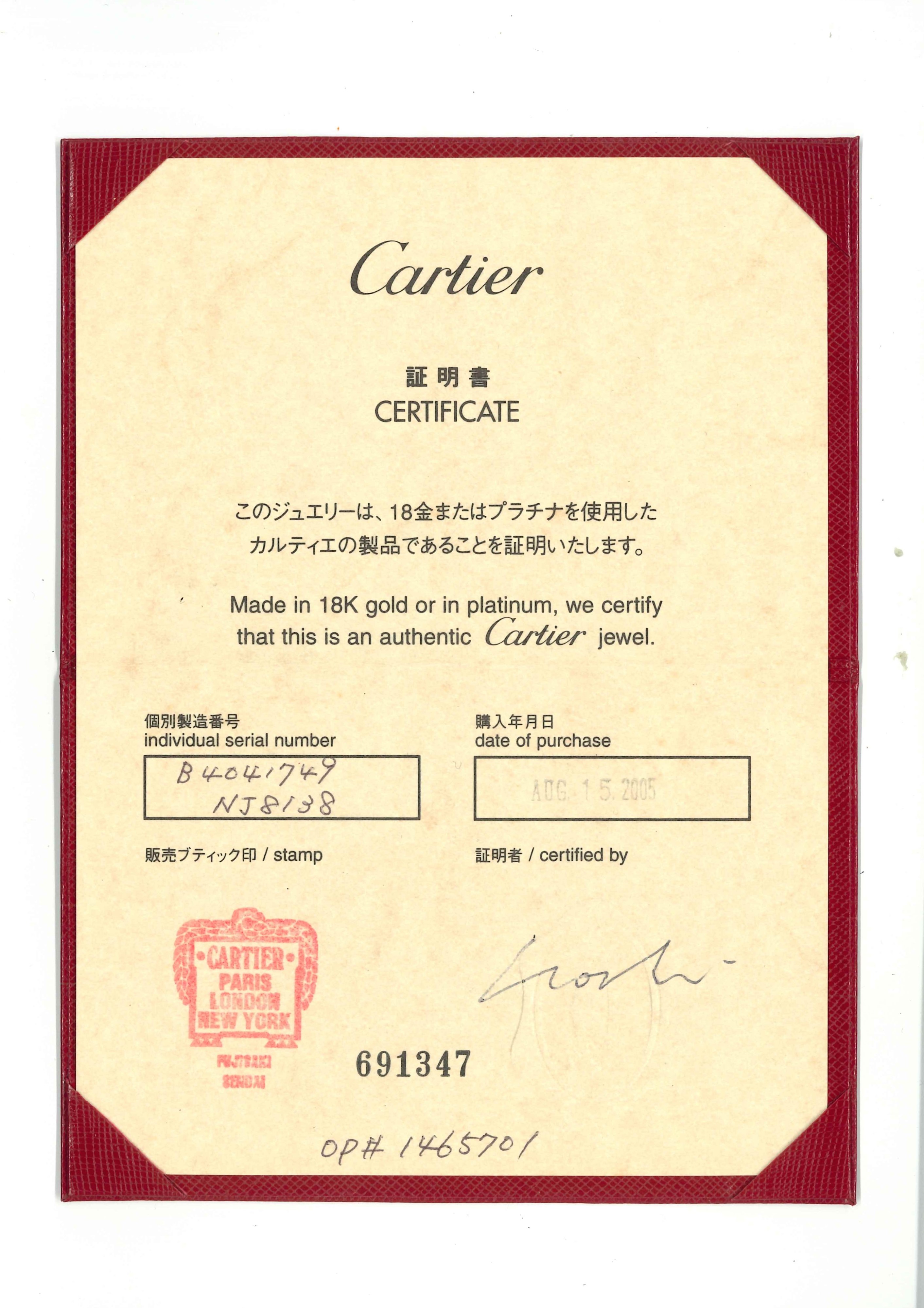 in oro rosa 18kfede con incisioni logo Cartier, con scatola e certificato.