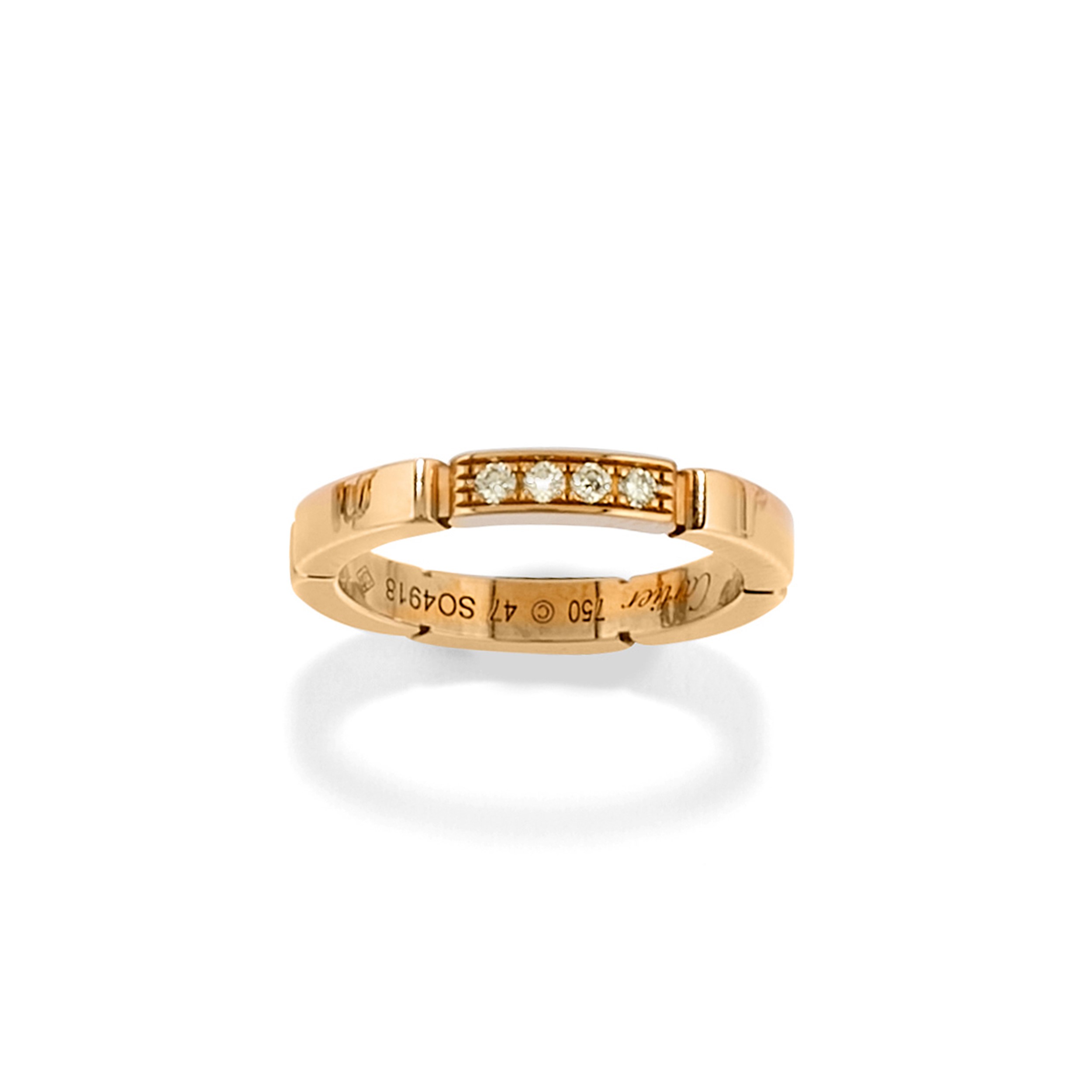 in oro rosa 18kcon un elemento decorato da quattro diamanti taglio brillante, con scatola.