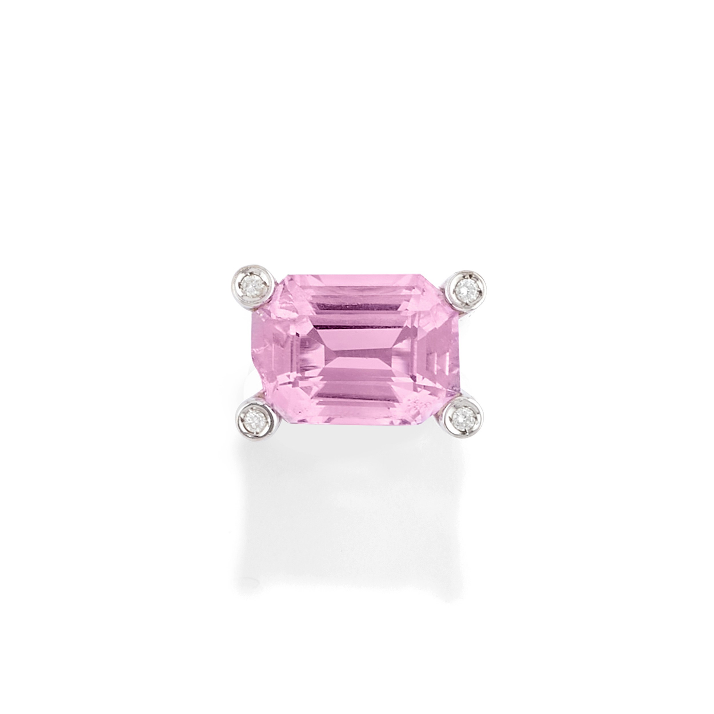 in oro bianco 18kcomposta da collana e anello con ametiste taglio rettangolare e goccia, diamanti taglio brillante a decoro, difetti (sbeccatura ad una ametista).
