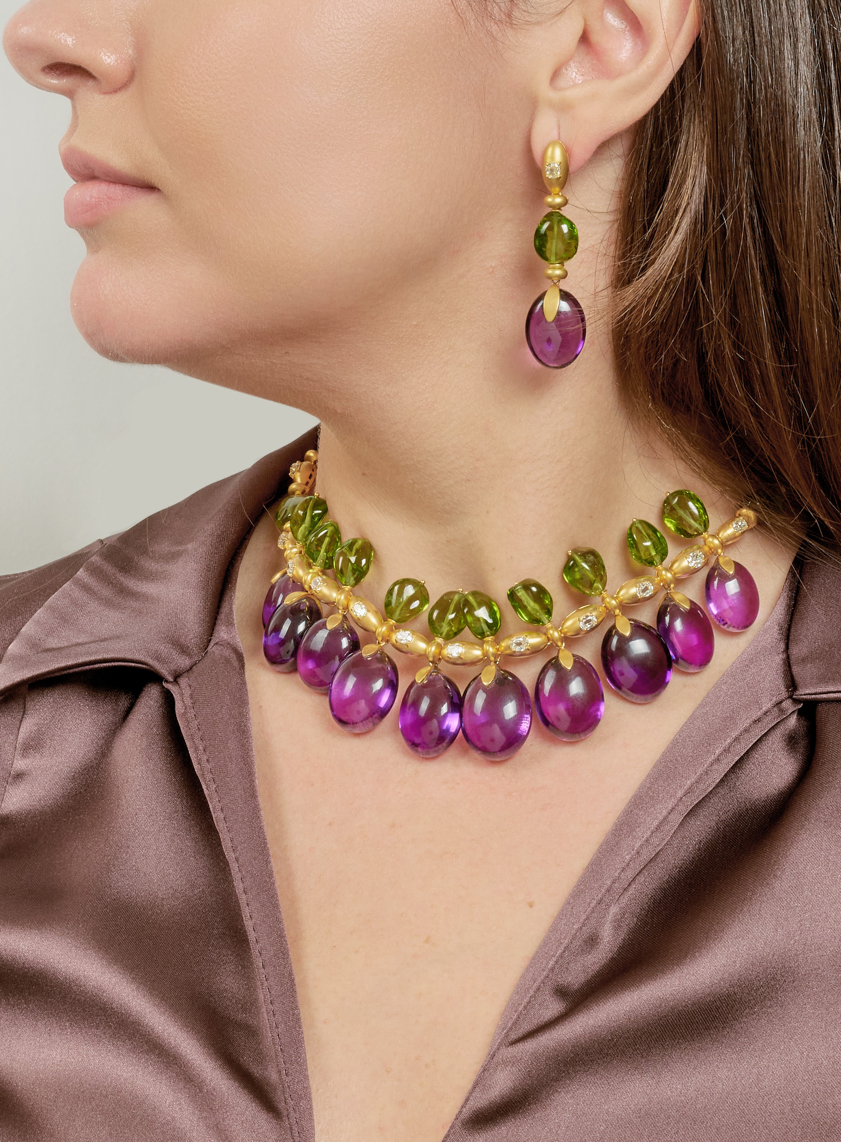 Demi-parure con ametiste e peridoti