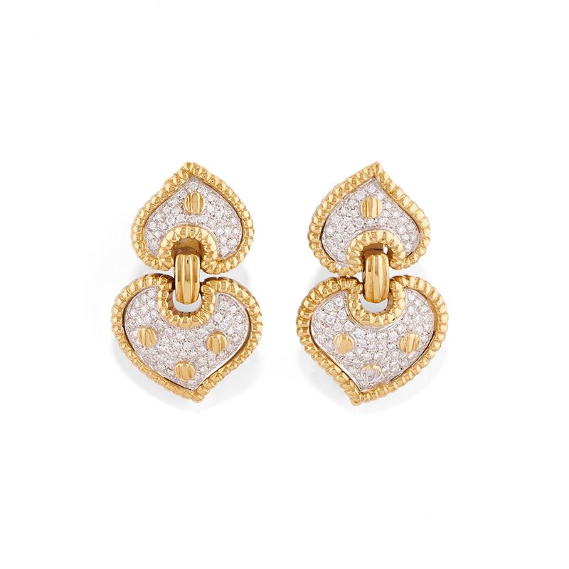 in oro bicolore 18ka doppio cuore con diamanti taglio brillante per totale ct 3,00 circa.