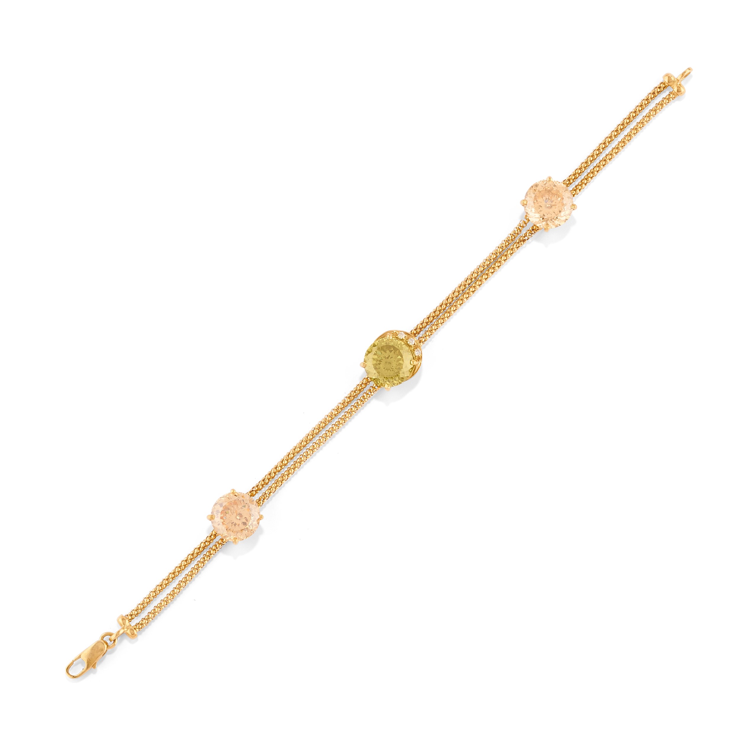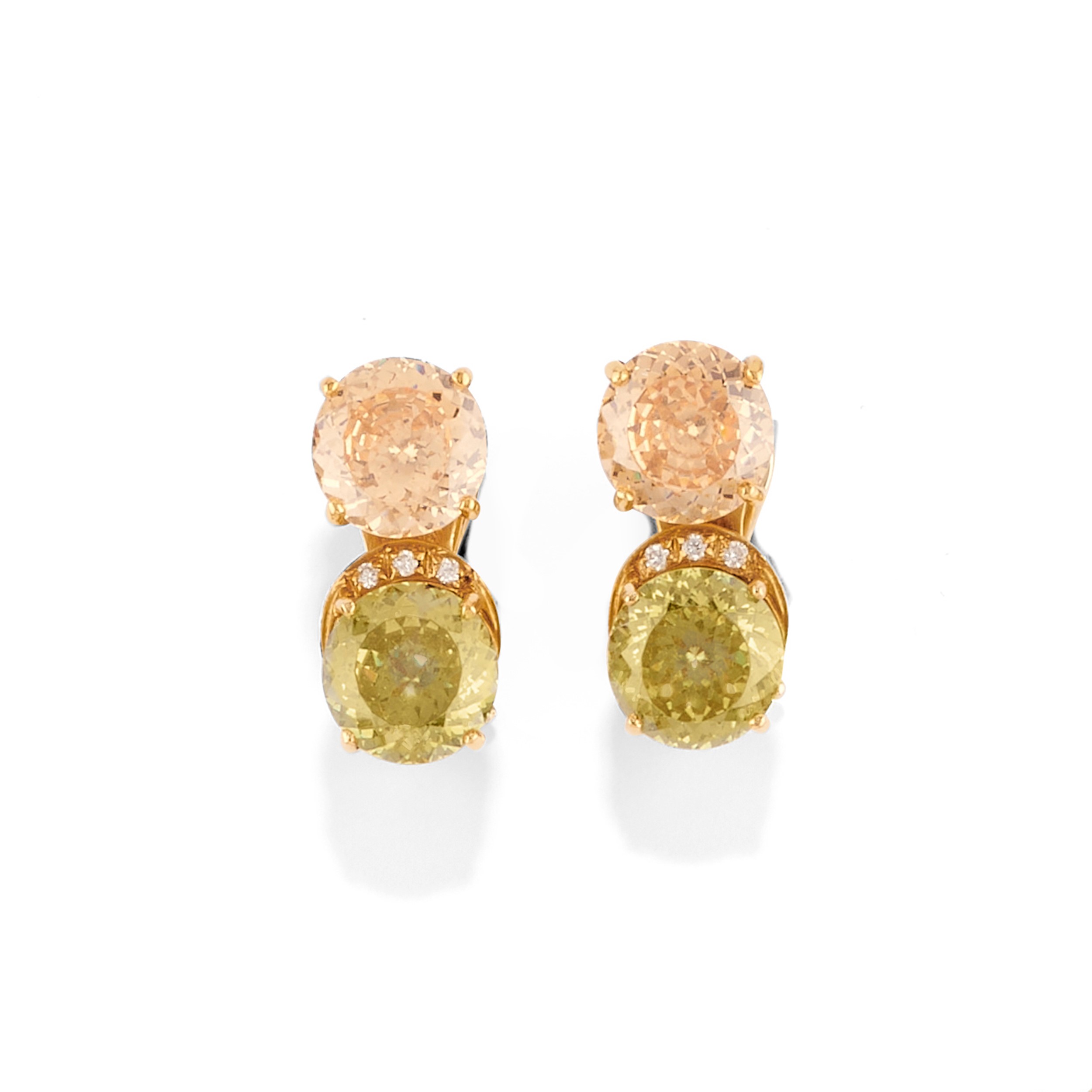 in oro giallo 18kcomposta da collana con pendente a croce, anello, bracciale e coppia di orecchini con chiusura perno e clip, piccoli diamanti a decoro.